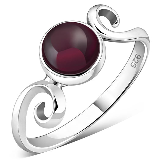 Twisted Garnet Stone Silver Ring