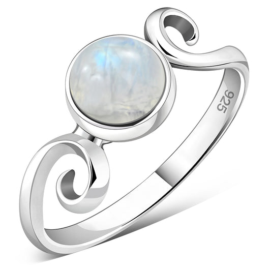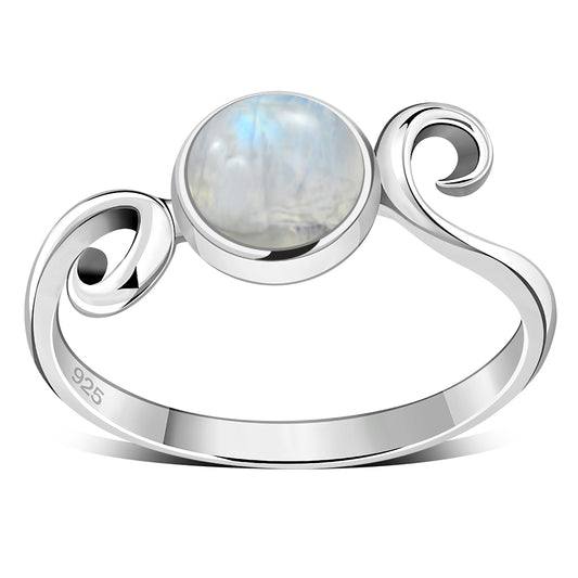 Rainbow Moonstone Silver Band Ring