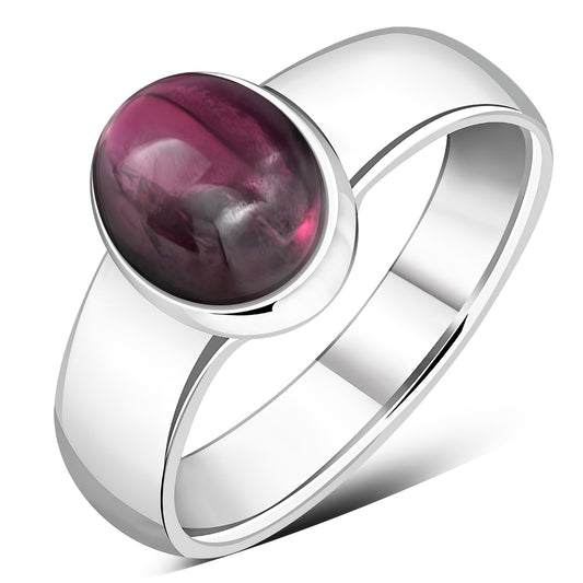 Garnet Stone Silver Band Ring