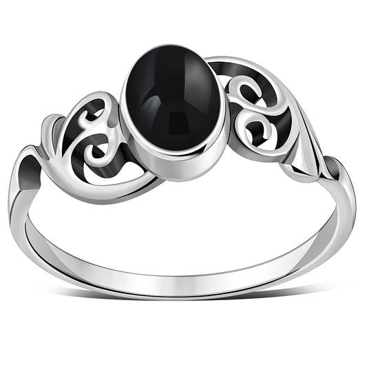 Black Onyx Cab Celtic Silver Ring
