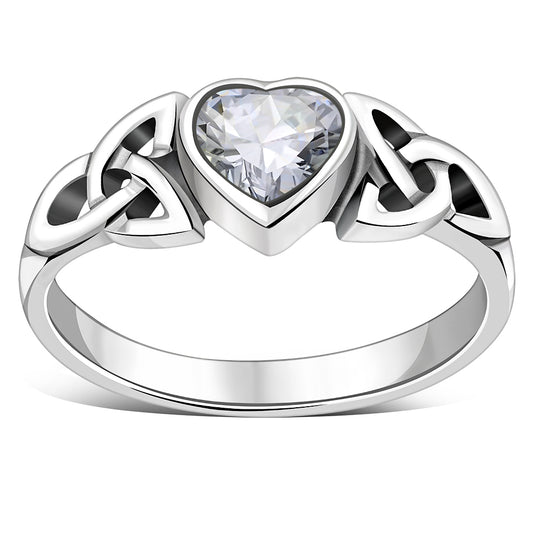 Celtic Knot Clear CZ Heart Silve...
