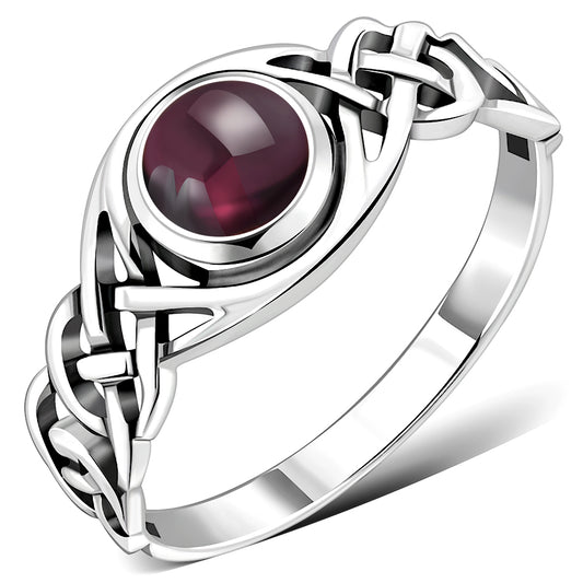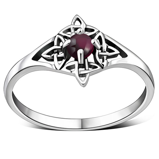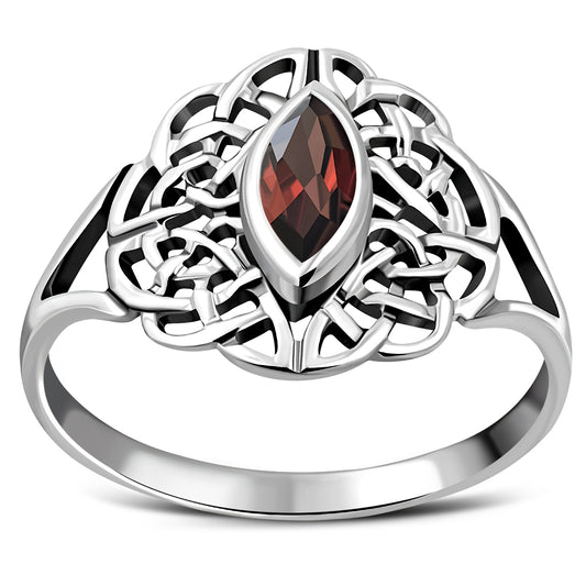 Garnet Stone Celtic Silver Ring