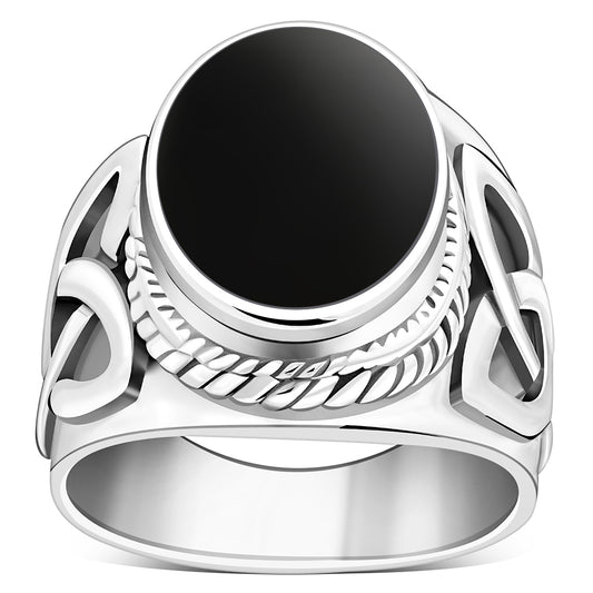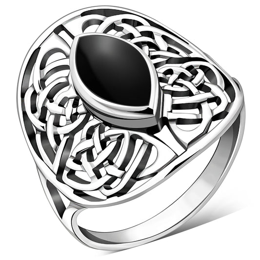 Large Black Onyx Celtic Silver Ring