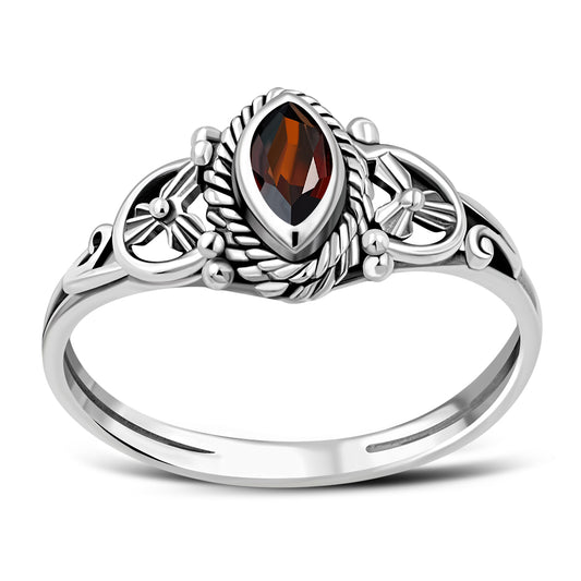 Garnet Stone Sterling Silver Ring