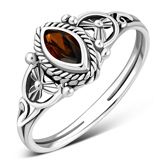 Ethnic Sterling Silver Garnet Ring