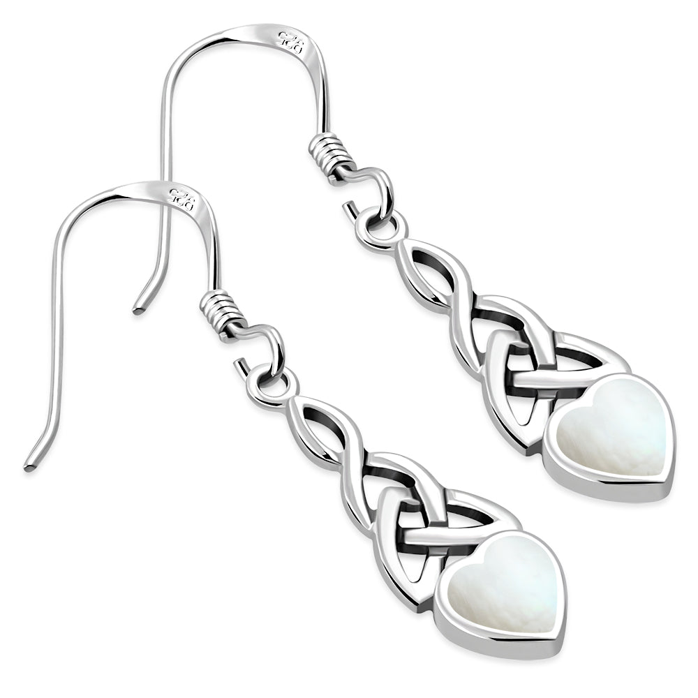 Mother of Pearl Heart Celtic Trinity Silver Earrings