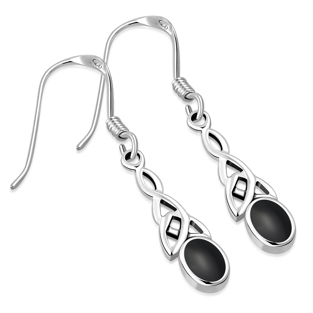 Black Onyx Celtic Trinity Silver Earrings