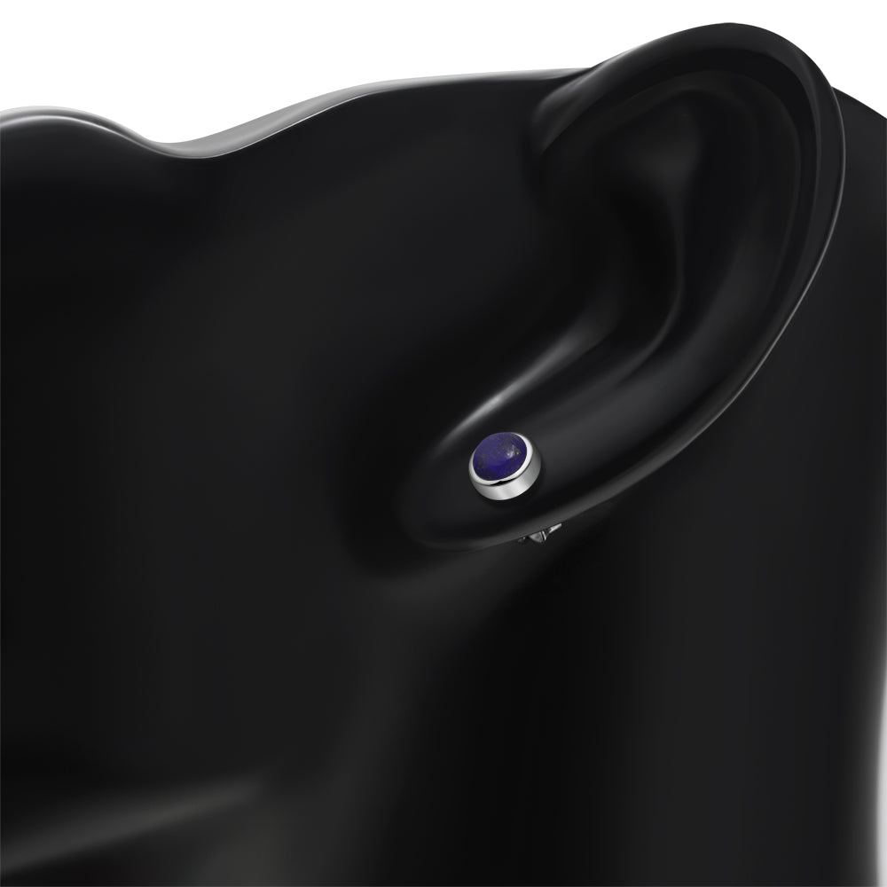 Lapis Lazuli Stone Round Silver Stud Earrings