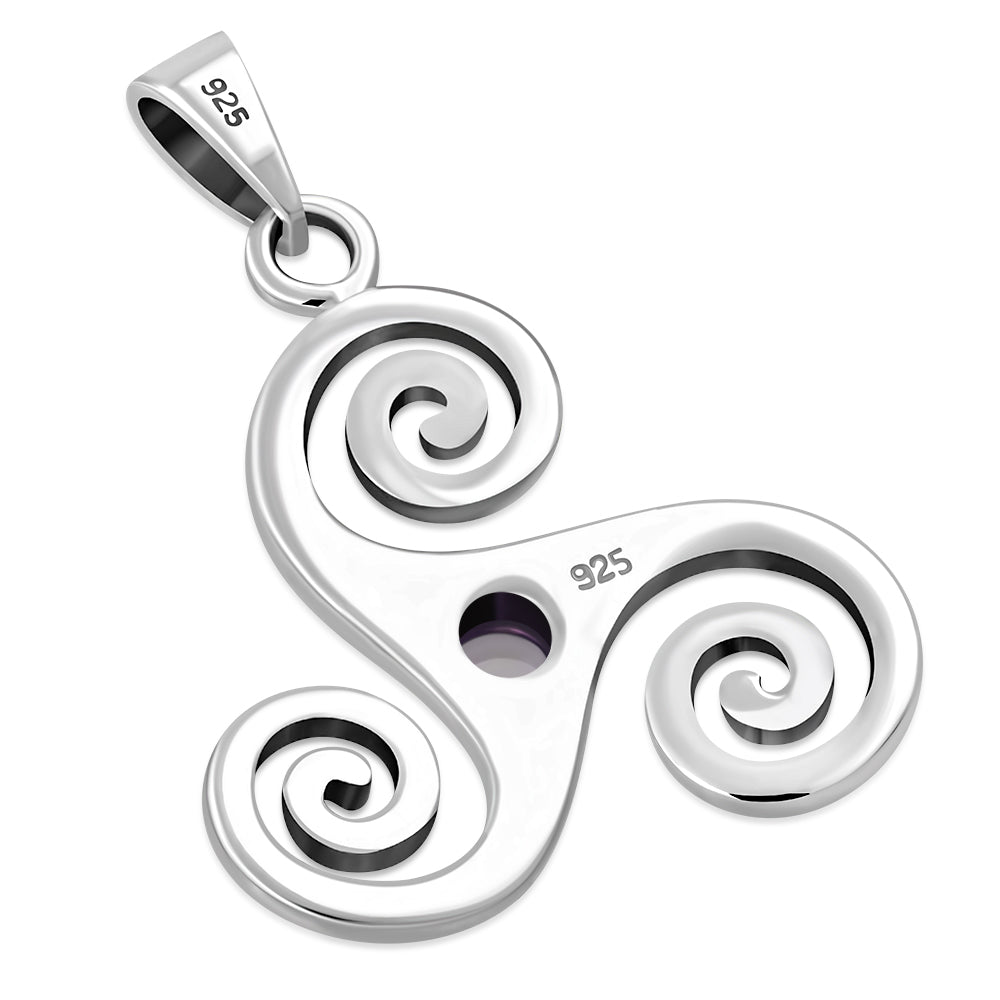 Amethyst Triskele Triskelion Triple Archimedean Spiral Celtic Silver Pendant