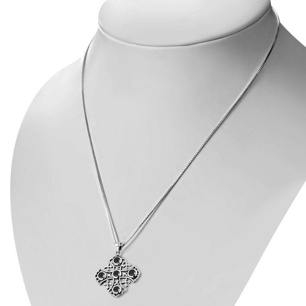 Jerusalem Cross Black Onyx Silver Pendant