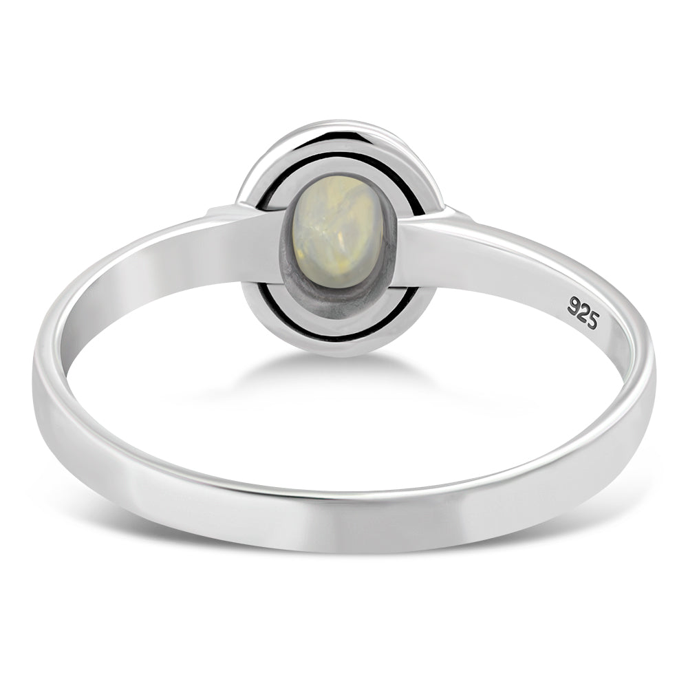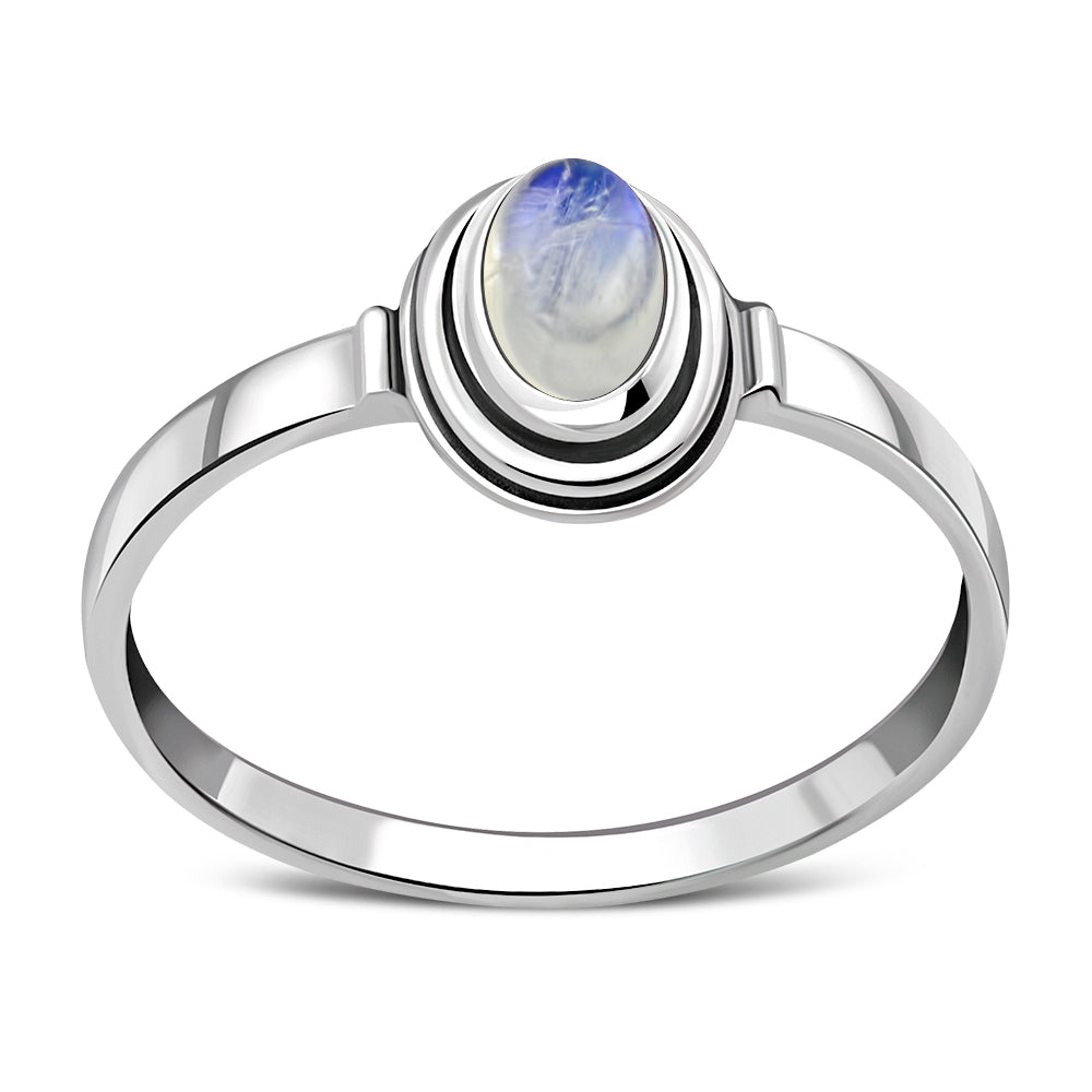 Delicate Ethnic Style Rainbow Moonstone Silver Ring