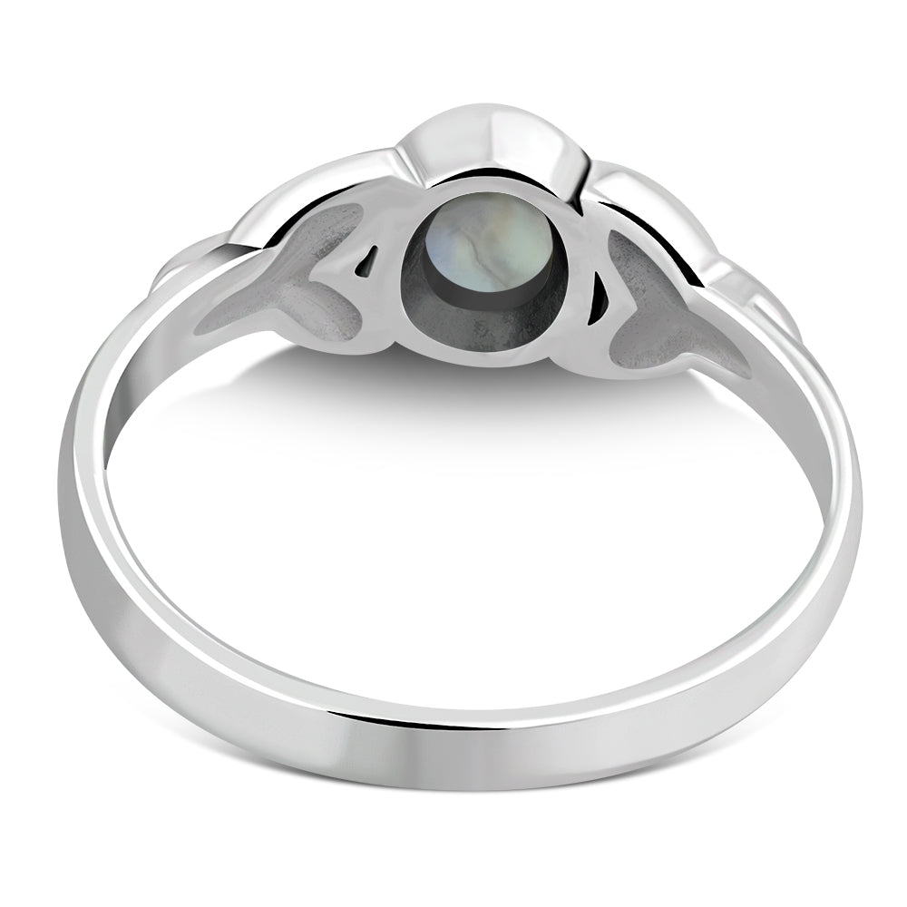 Silver Trinity Ring w/ Rainbow Moon Stone