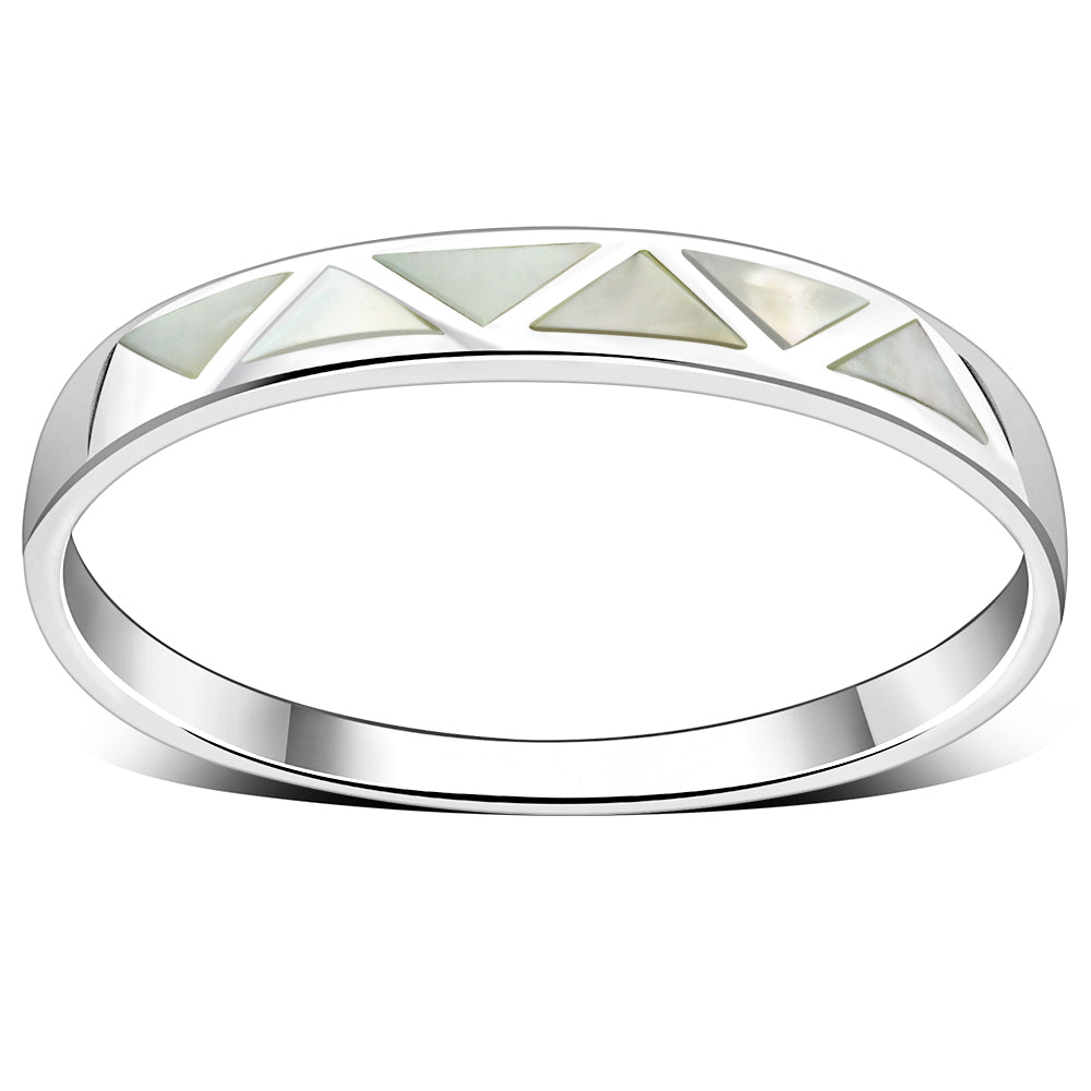Mother of Pearl Sea Shell Silver Band Ring