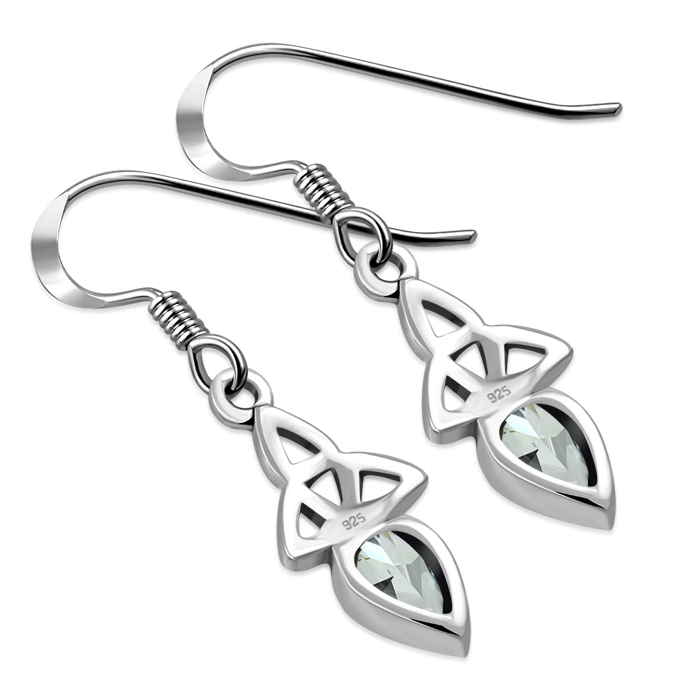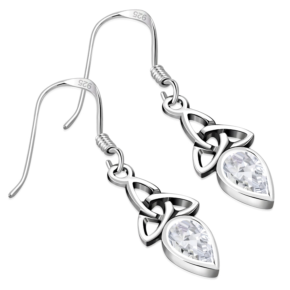Clear CZ Celtic Trinity Silver Earrings