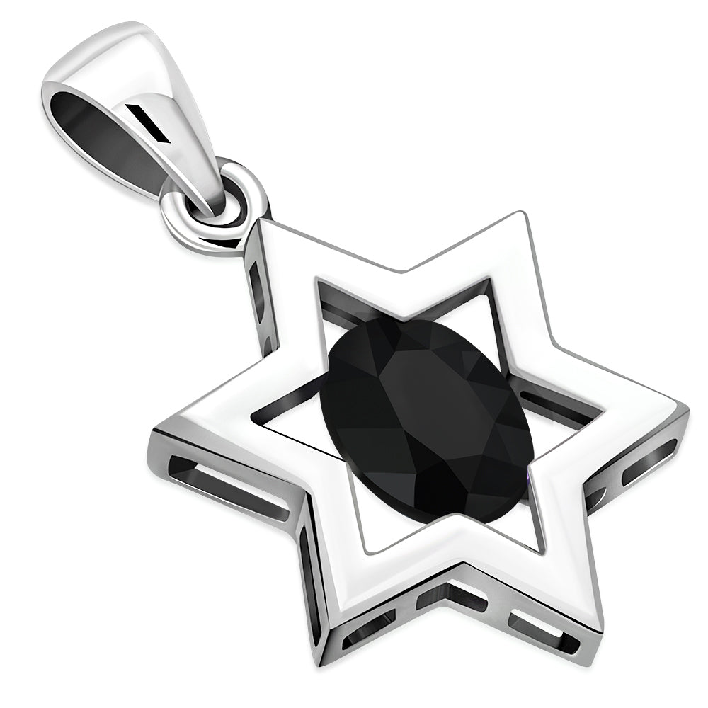 This exquisite 925 Sterling Silver Star of David pendant showcases a captivating blend of faith and style. At its heart, a mesmerizing oval-cut Faceted Black Onyx, known for its grounding energy, takes center stage.