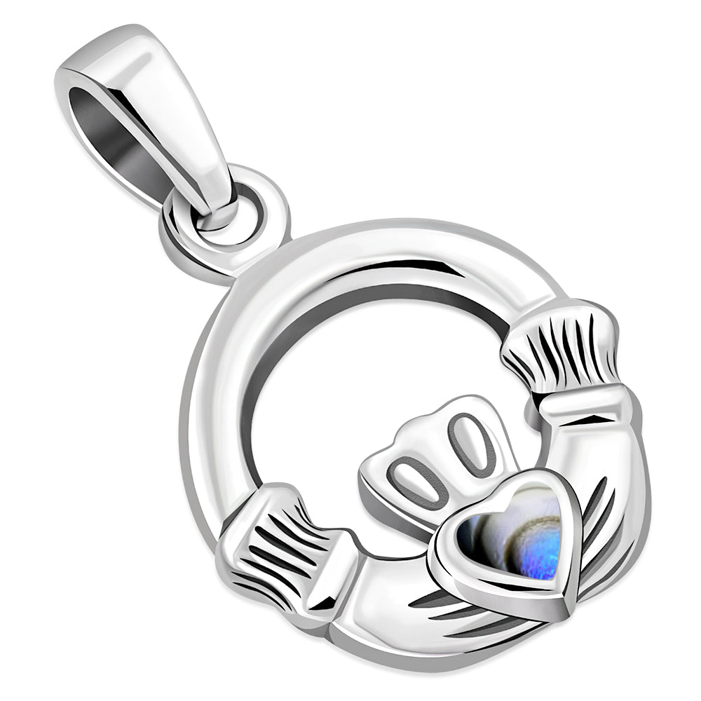 Tiny Claddagh Silver Pendant w/ Abalone Shell