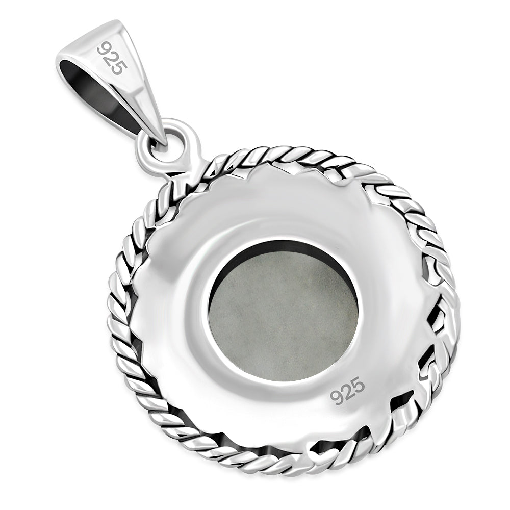 Round Rainbow Moonstone Celtic Knot Silver Pendant