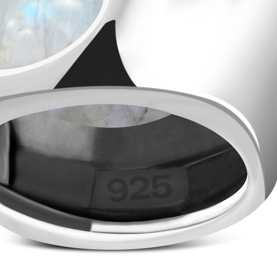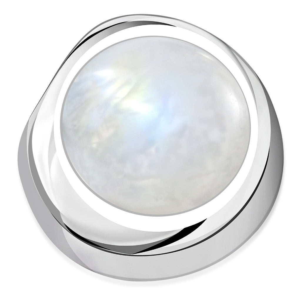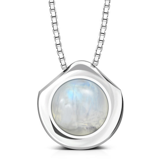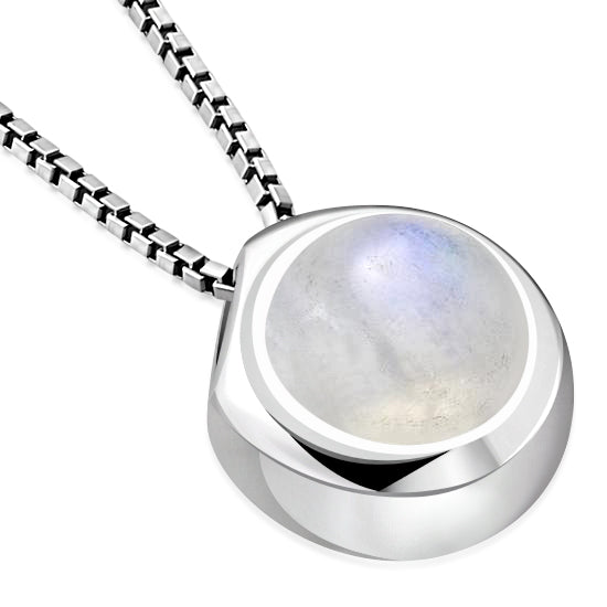 Rainbow Moonstone Round Silver Pendant
