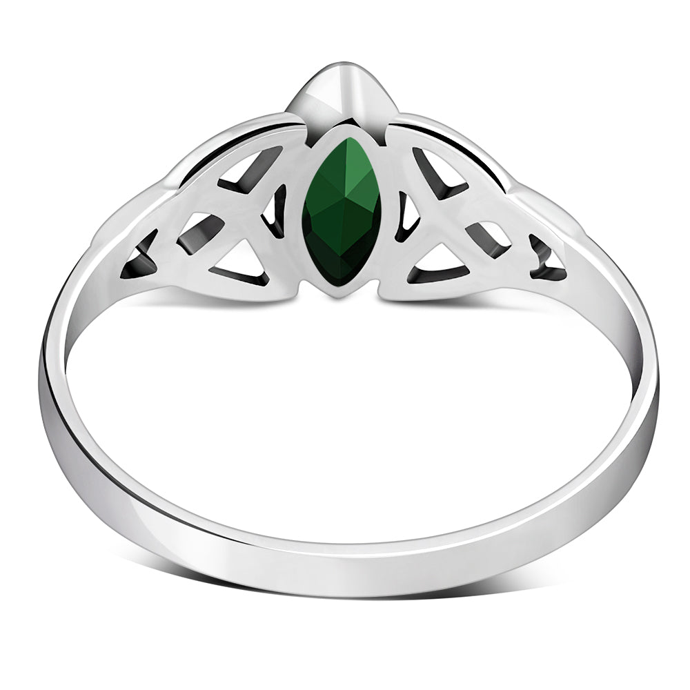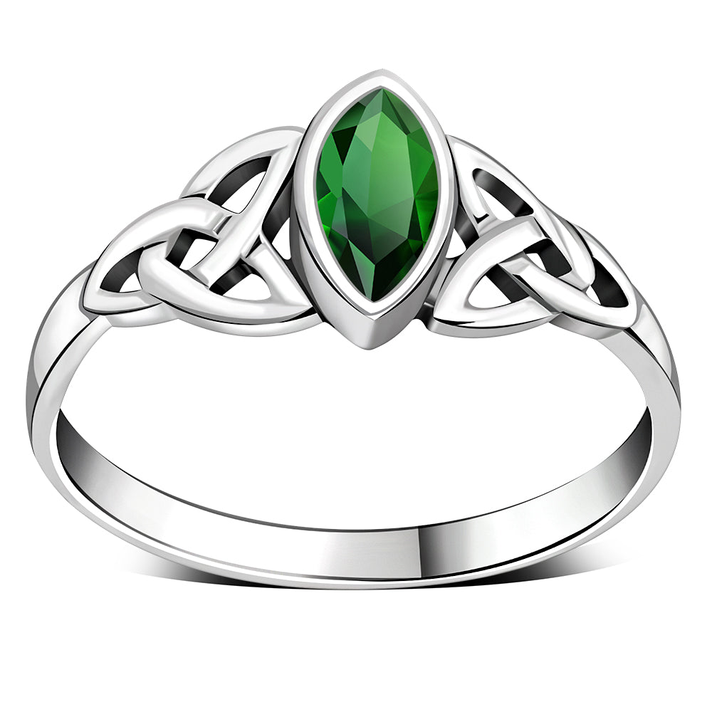 The marquise-cut emerald green cubic zirconia shimmers with vibrancy, symbolizing growth, prosperity, and renewal. Add a touch of magic and history to your look.