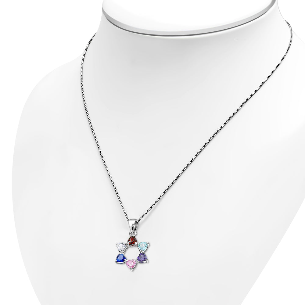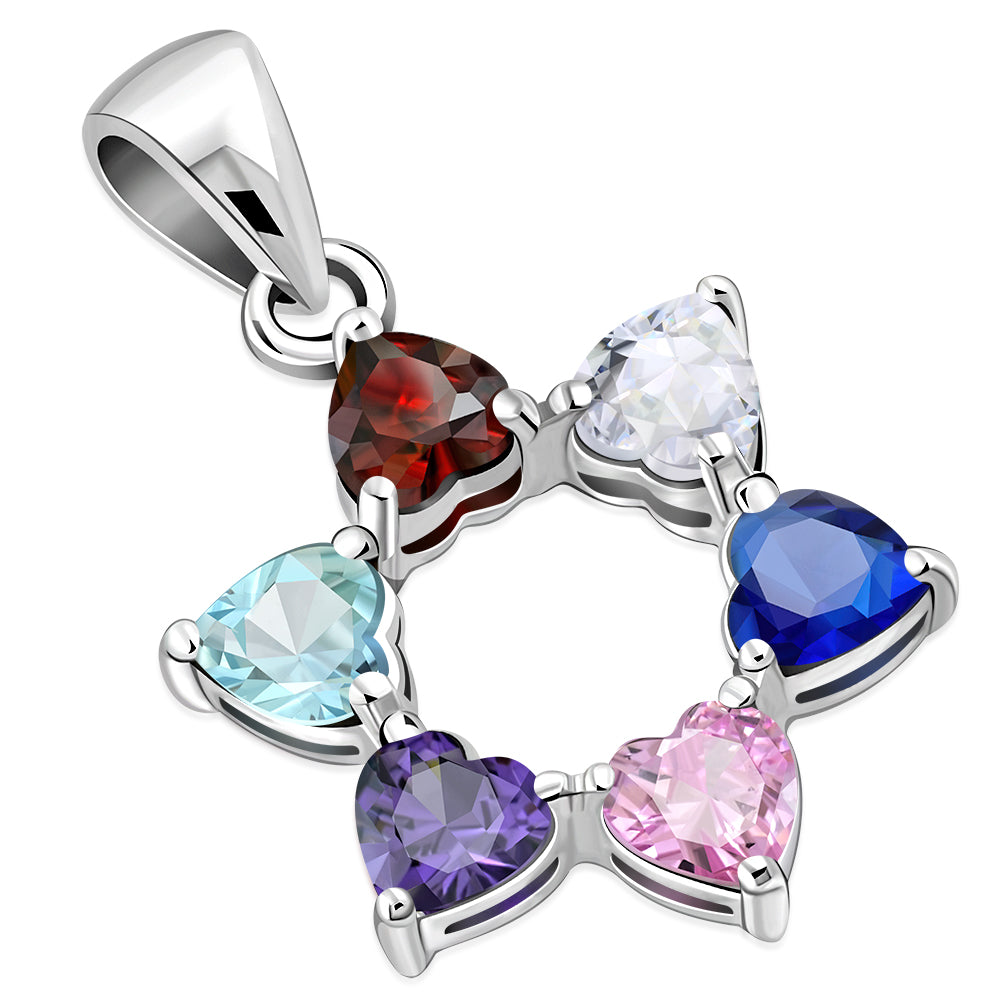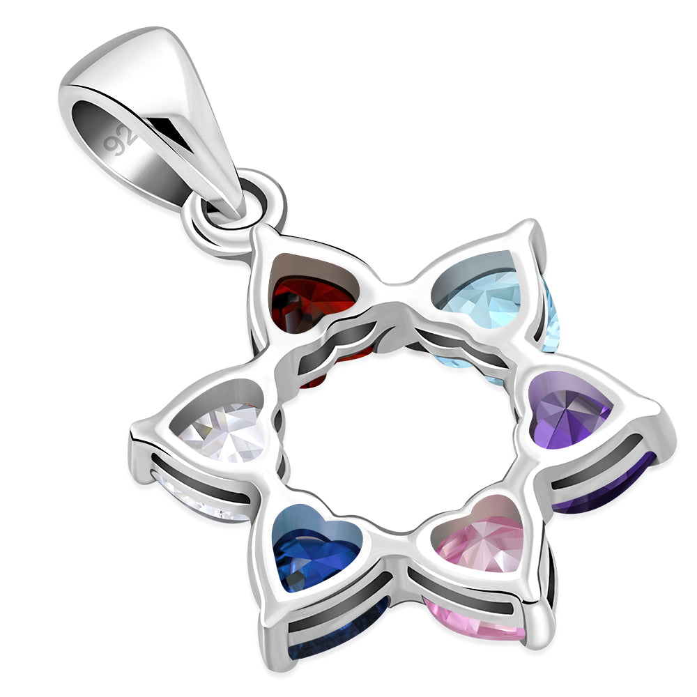 Heart Shape Mix Color CZ Star David Silver Pendant