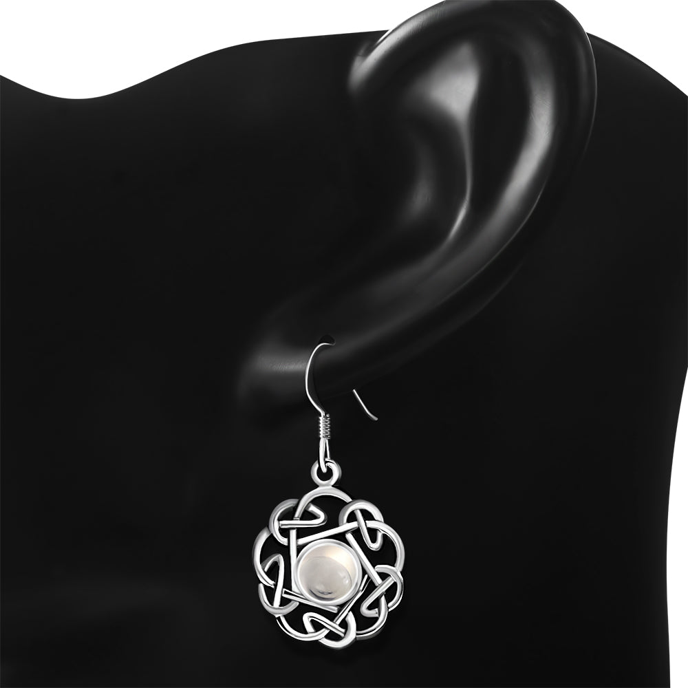 Rose Quartz Pink Stone Round Celtic Knot Silver Earrings