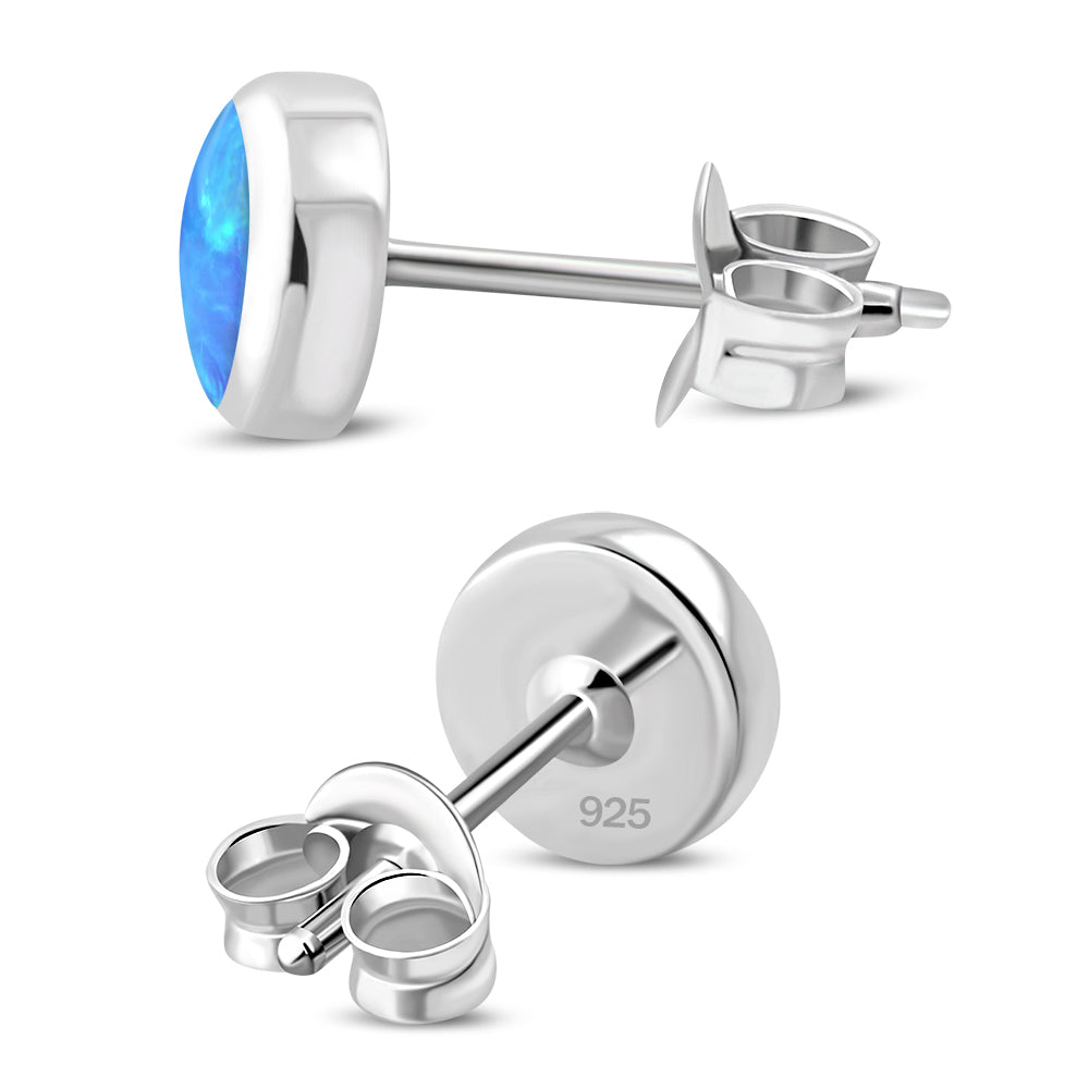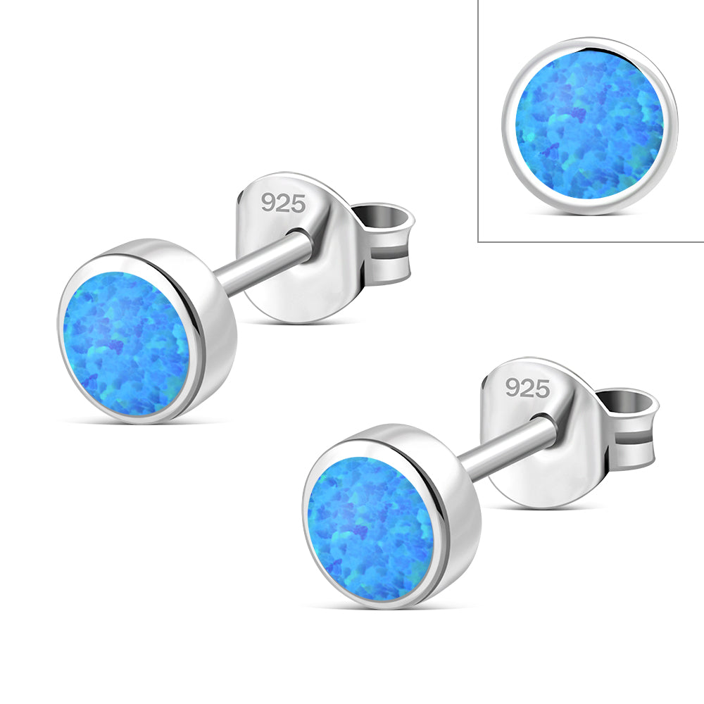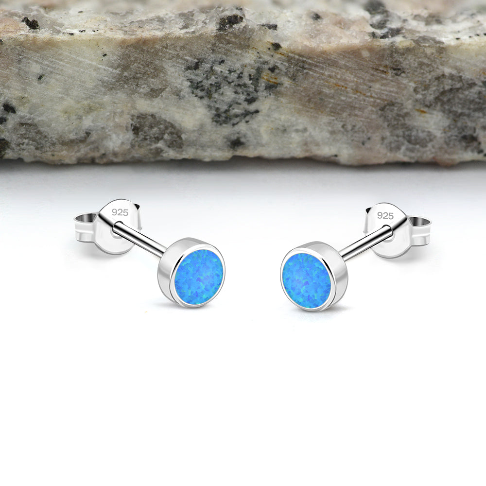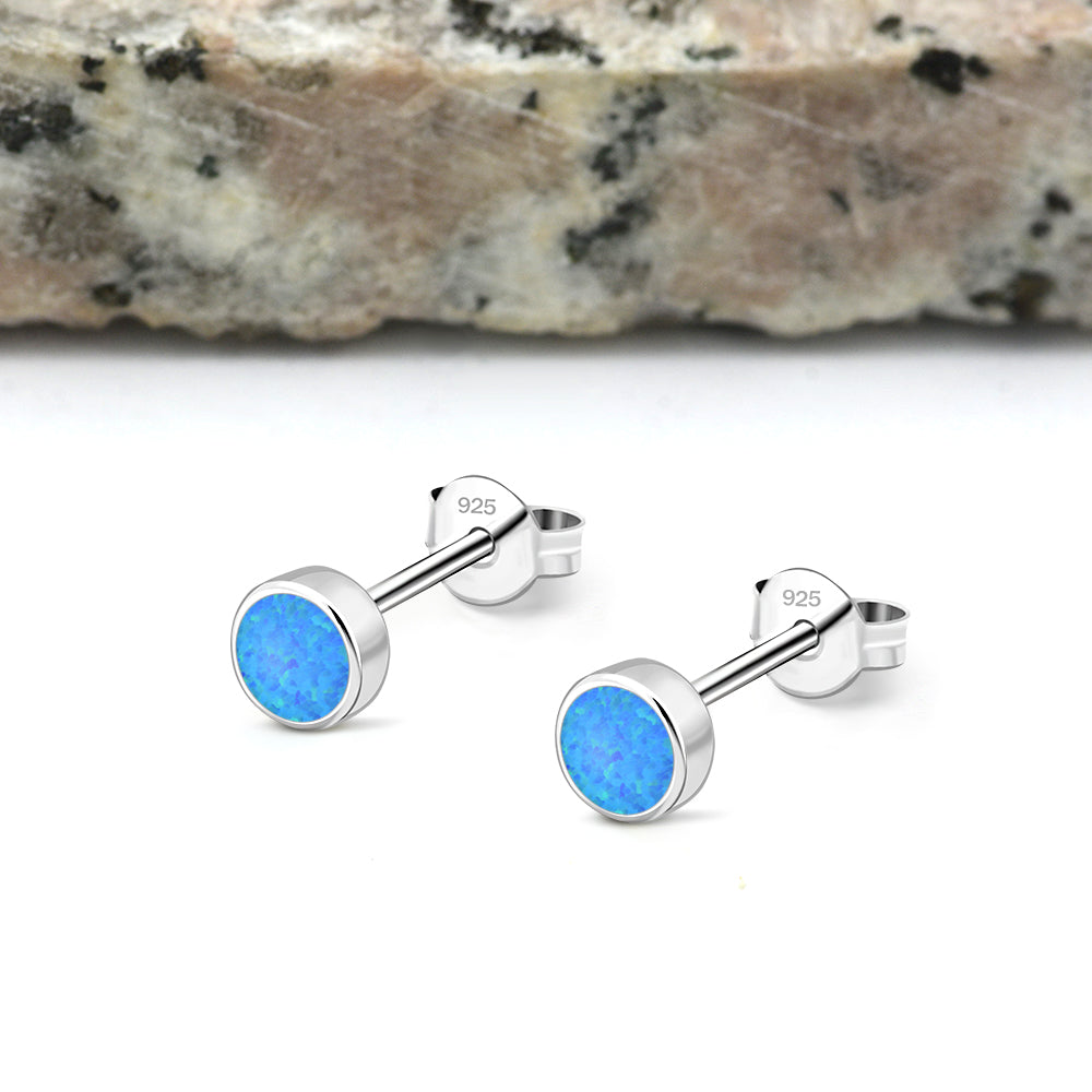 5mm | Round Synthetic Blue Opal Sterling Silver Stud Earrings