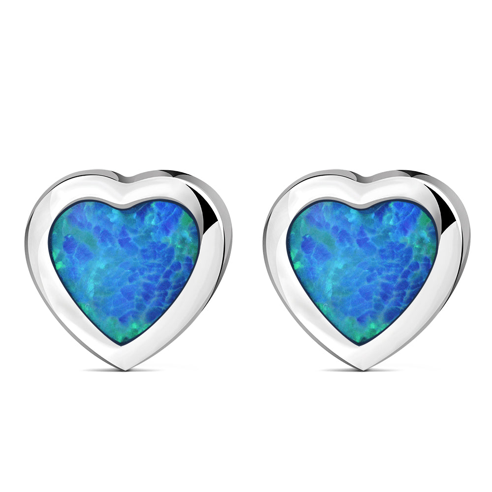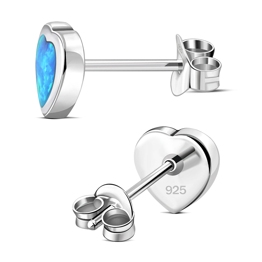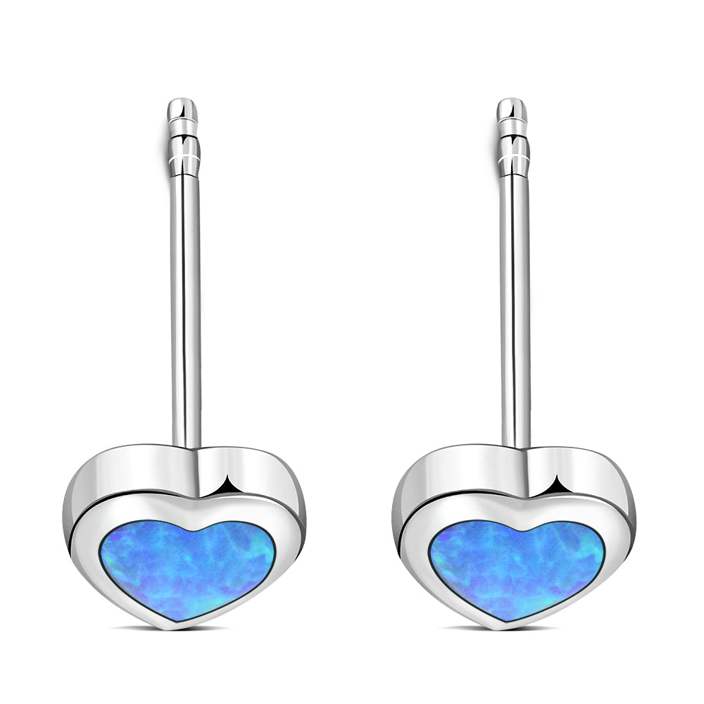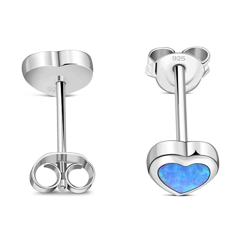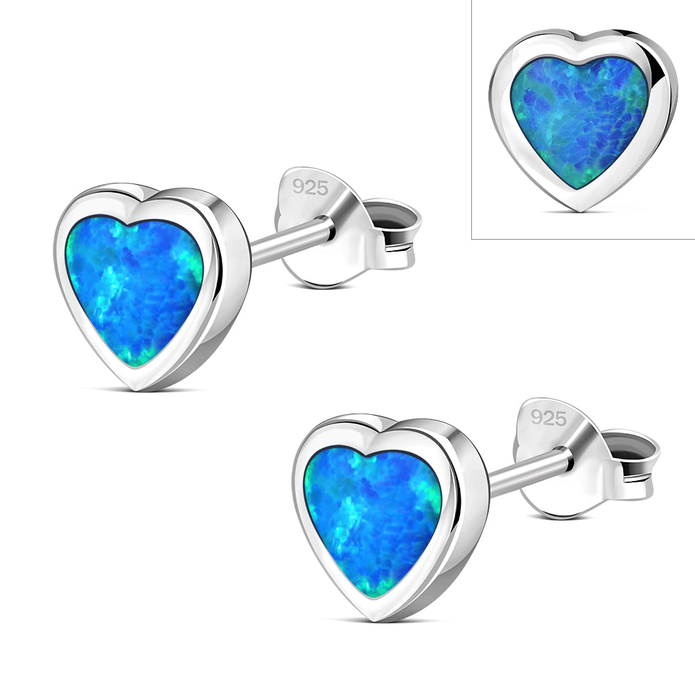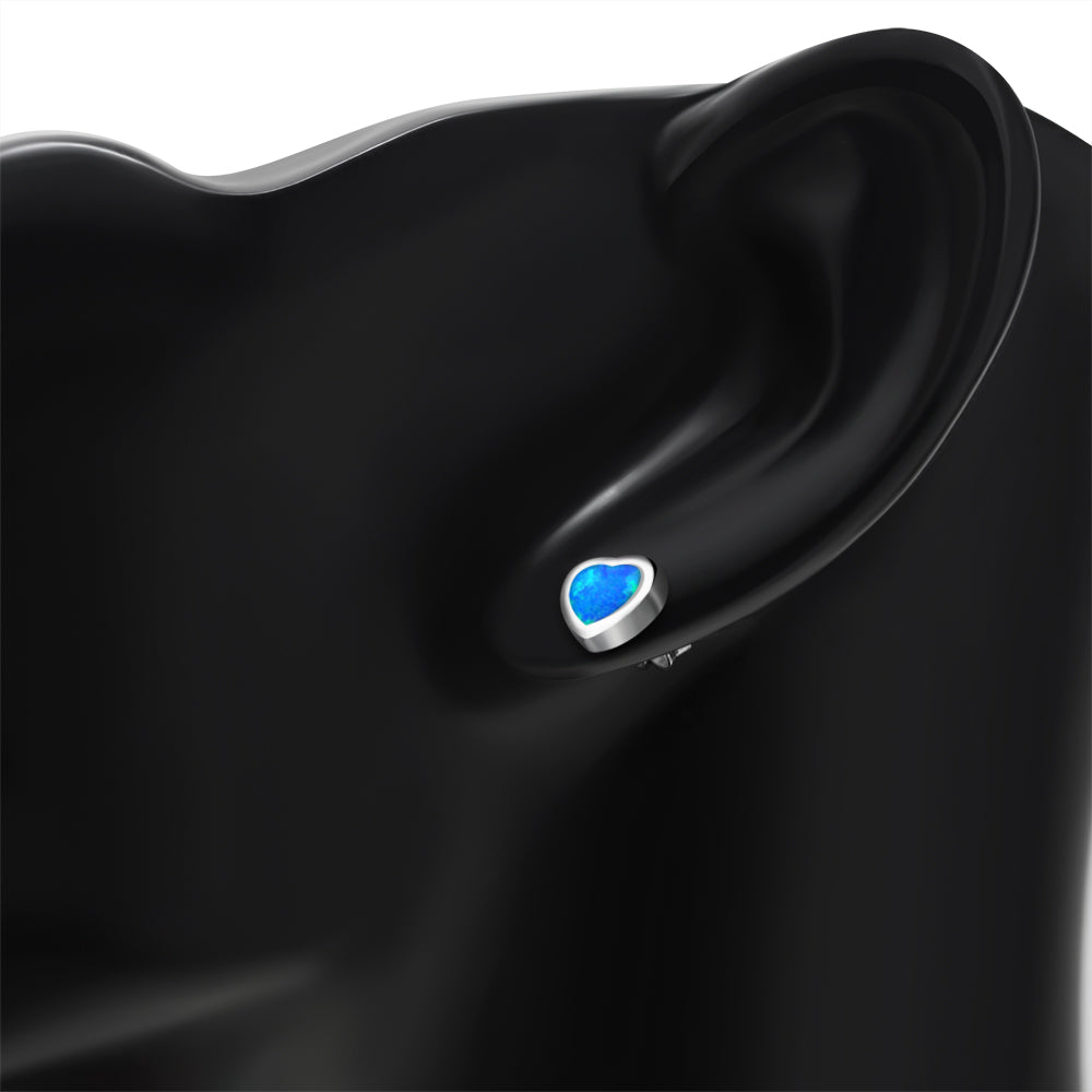 Synthetic Blue Opal Heart Silver Stud Earrings