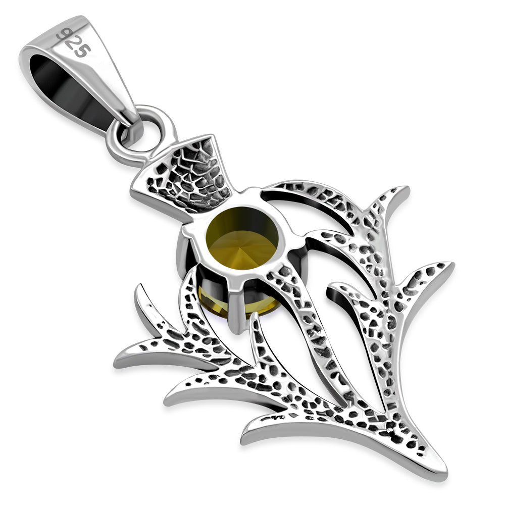 Small Silver Thistle Pendant set w/ Faceted Citrine Stone