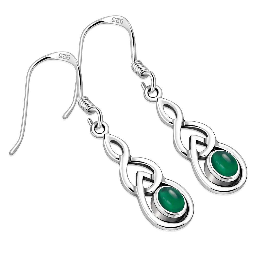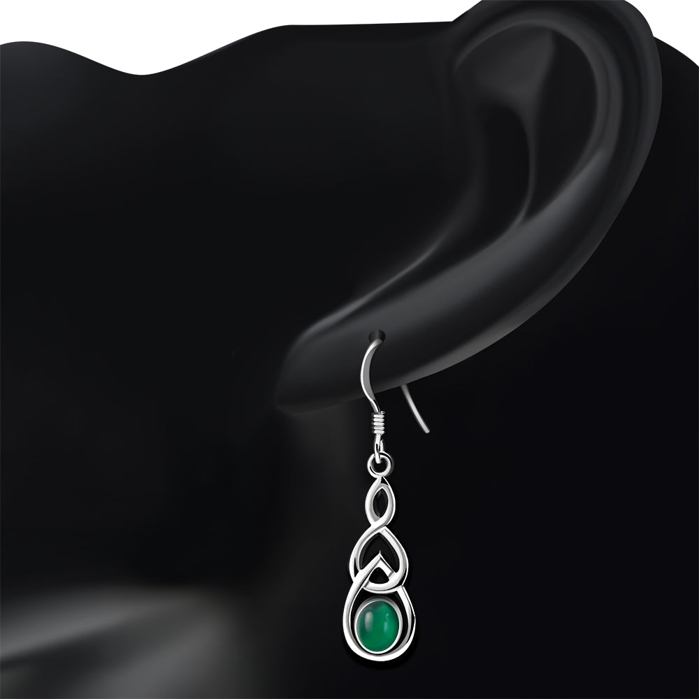 Green Agate Celtic Knot Drop Dangle Hook Earrings