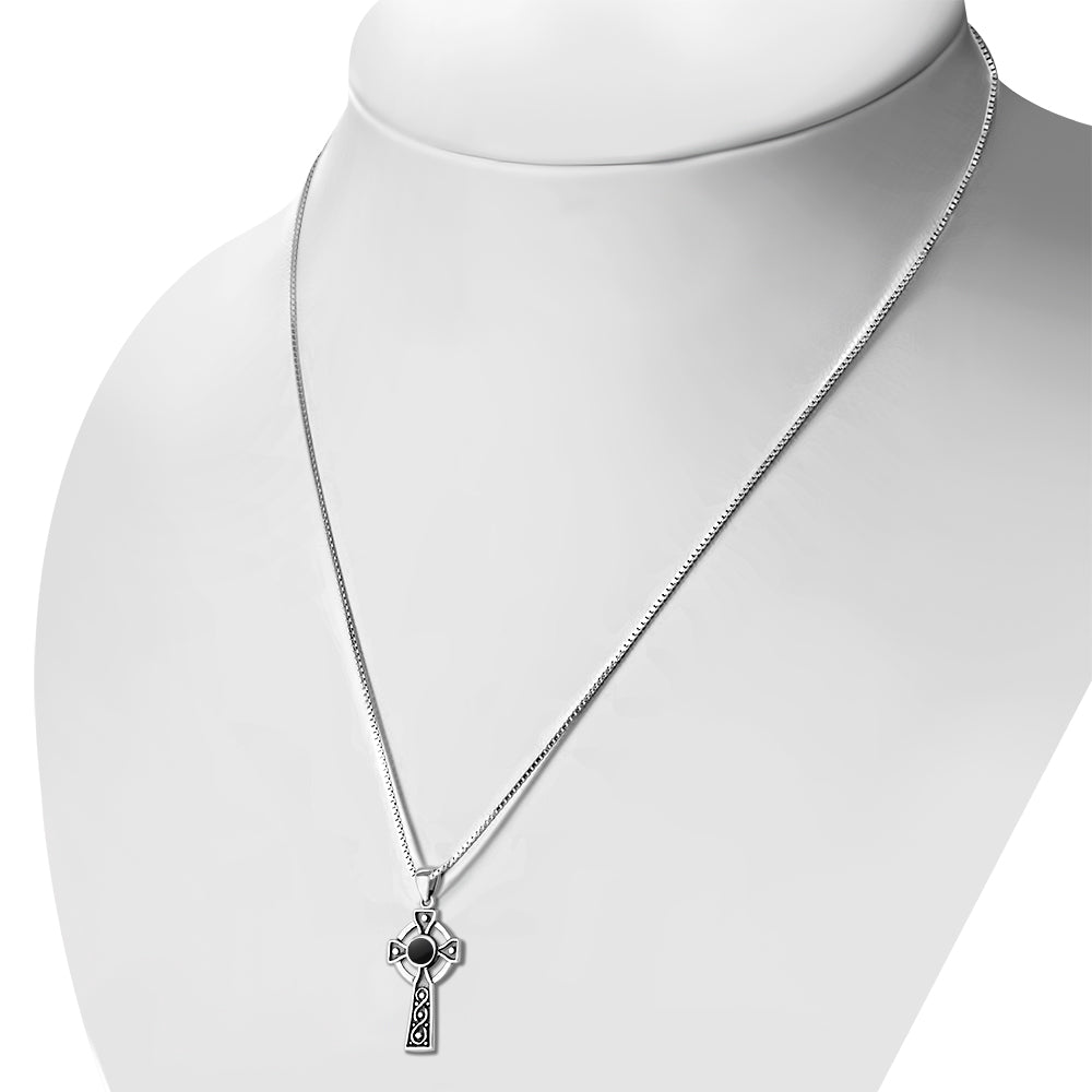 Black Onyx Celtic Infinity Knot Cross Silver Pendant