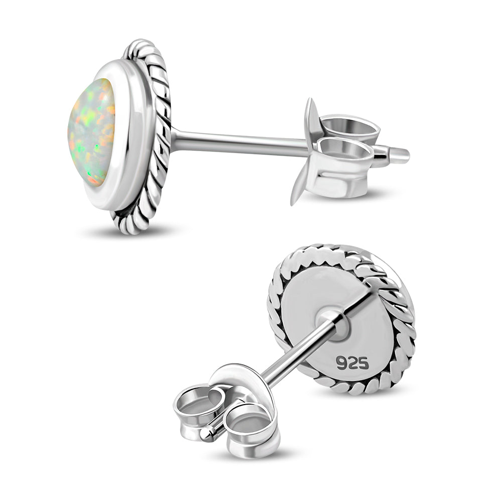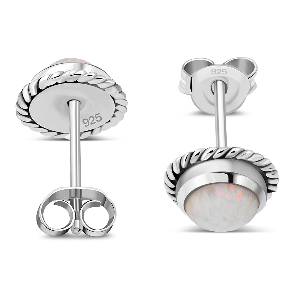 Round Synthetic Sun & Ice Opal Stud Silver Earrings