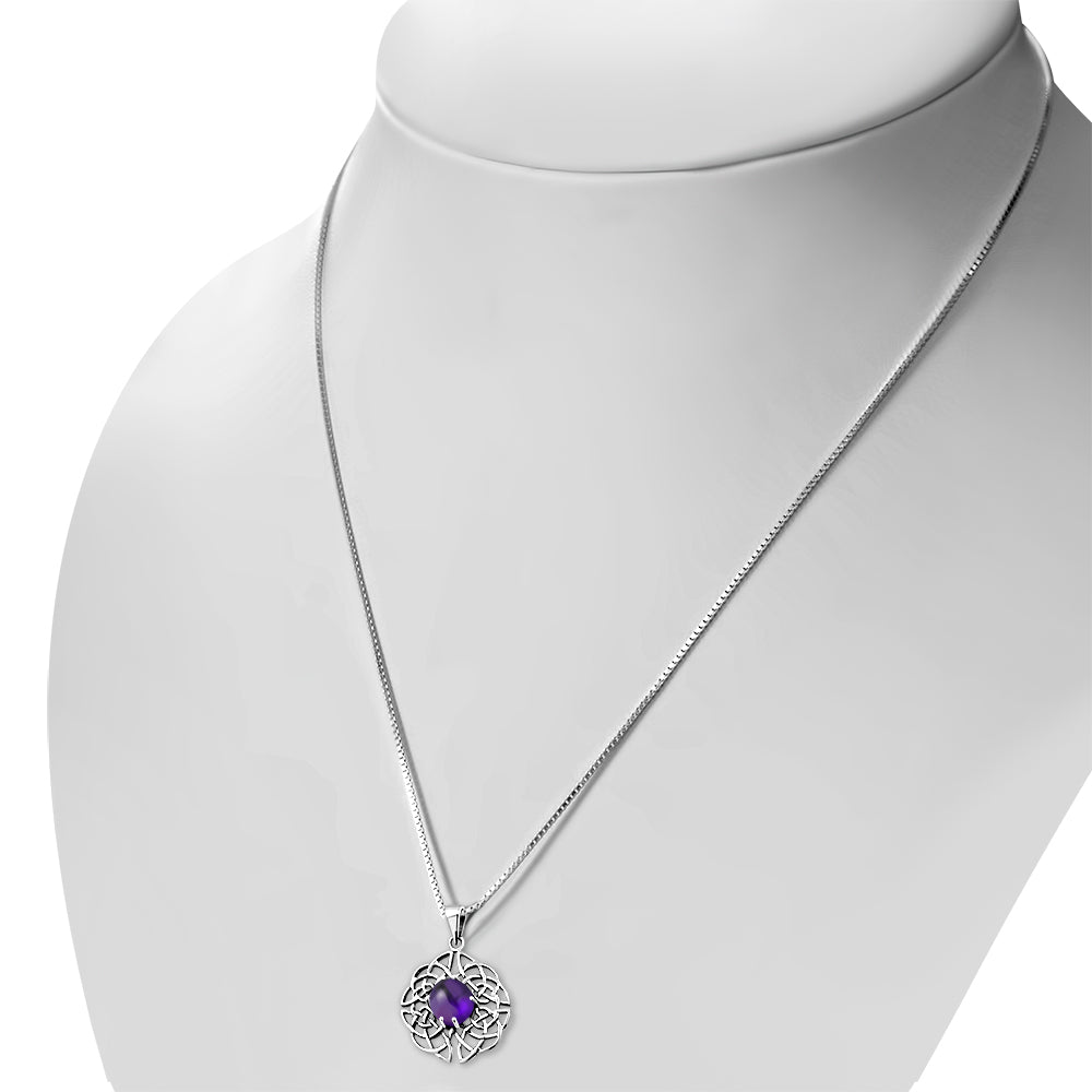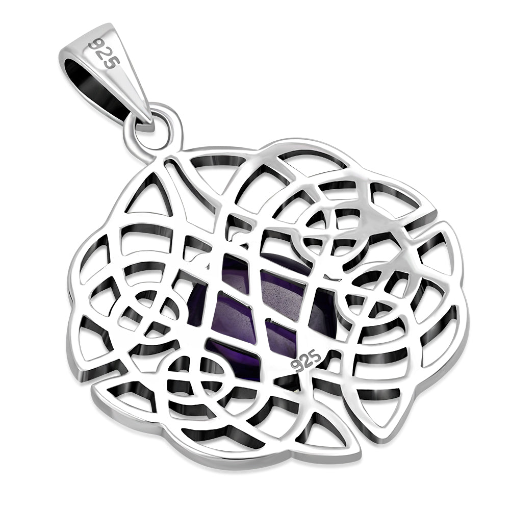 Round Celtic Knot Silver Pendant set w/ Amethyst Stone