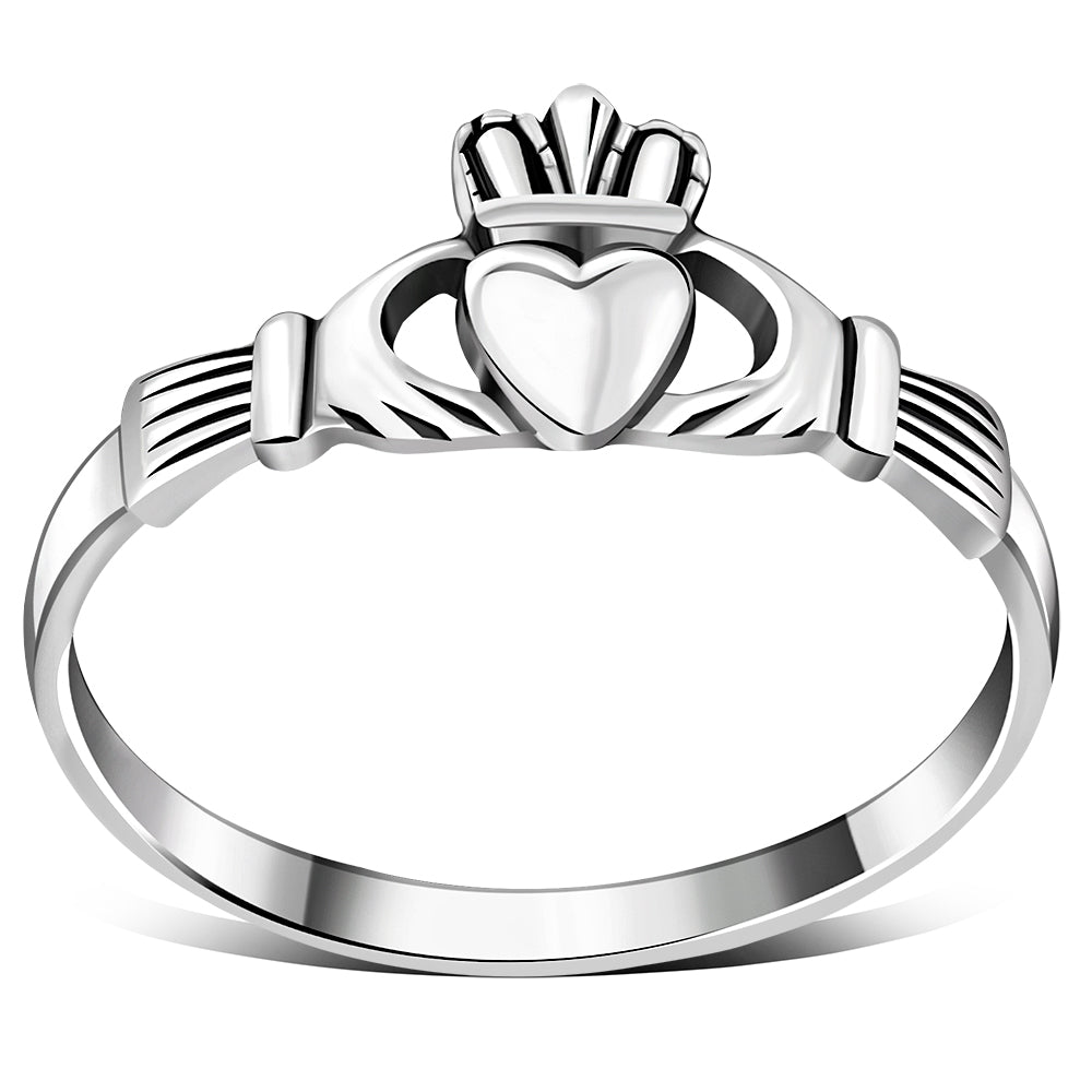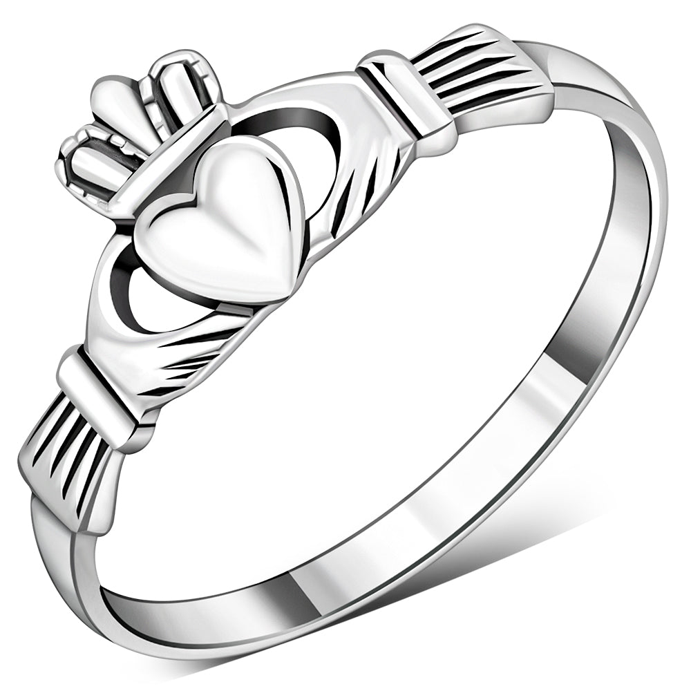 Claddagh rings are said to represent love (the heart), loyalty (the hands), and friendship (the crown) when worn with the heart facing outward. Express yourself in style and tradition.