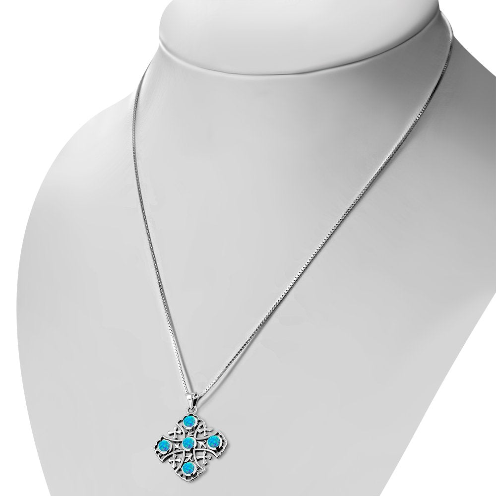 Synthetic Blue Opal Jerusalem Cross Silver Pendant