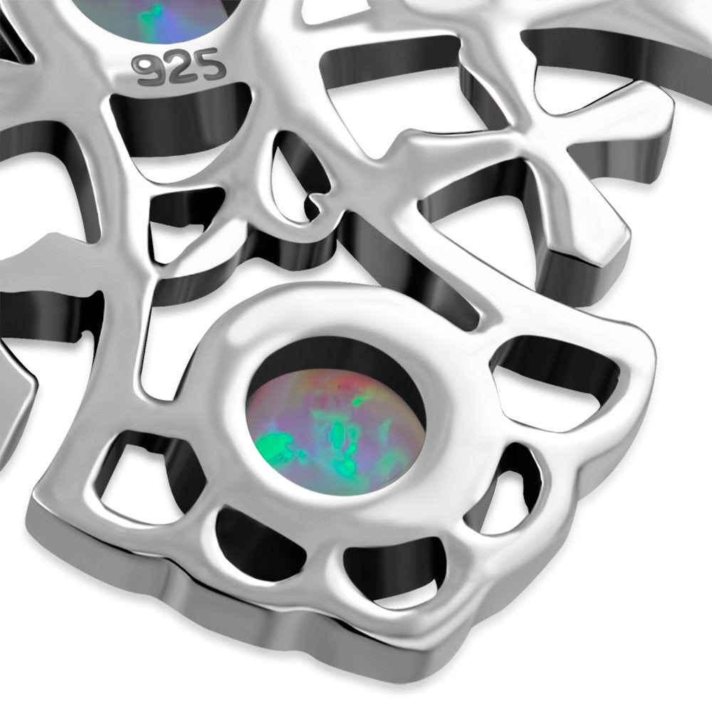 The central cross symbolizes Jesus Christ, while the four smaller crosses represent the four evangelists. Opal, often associated with inspiration and creativity, adds a touch of ethereal beauty to this meaningful pendant.