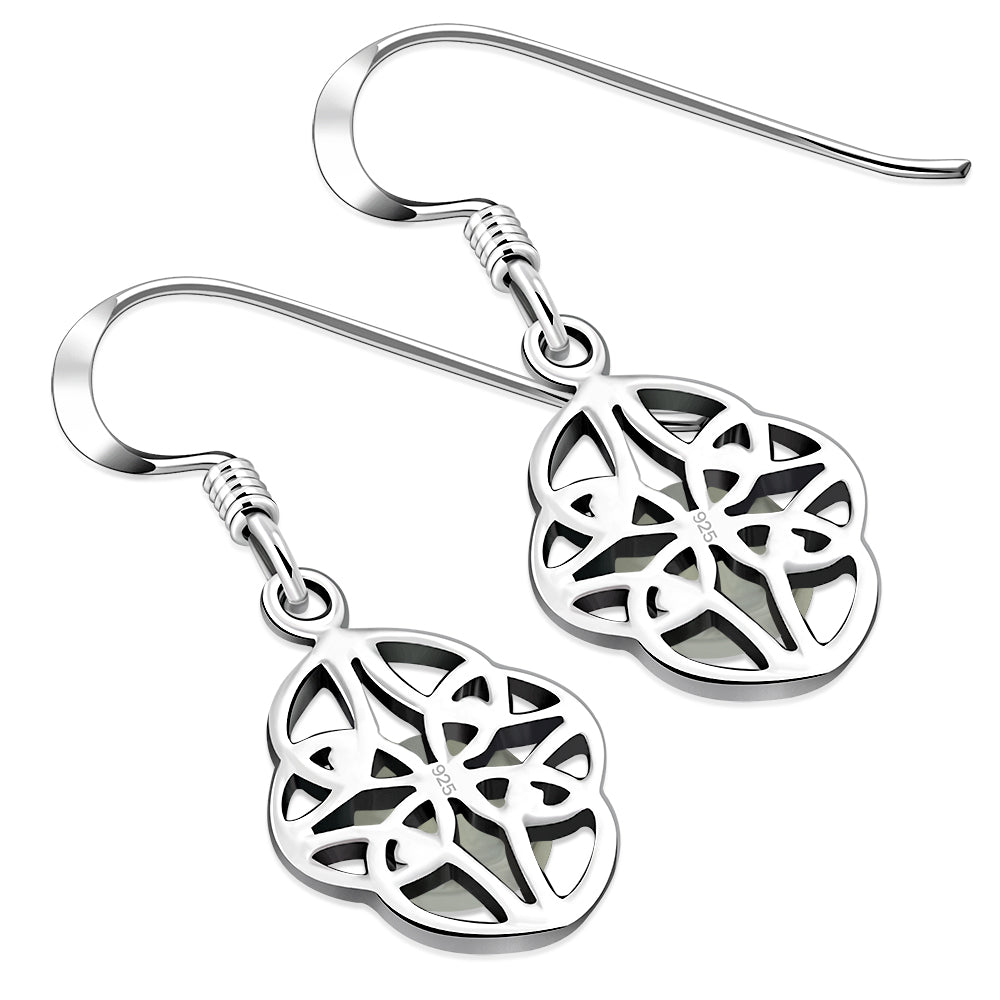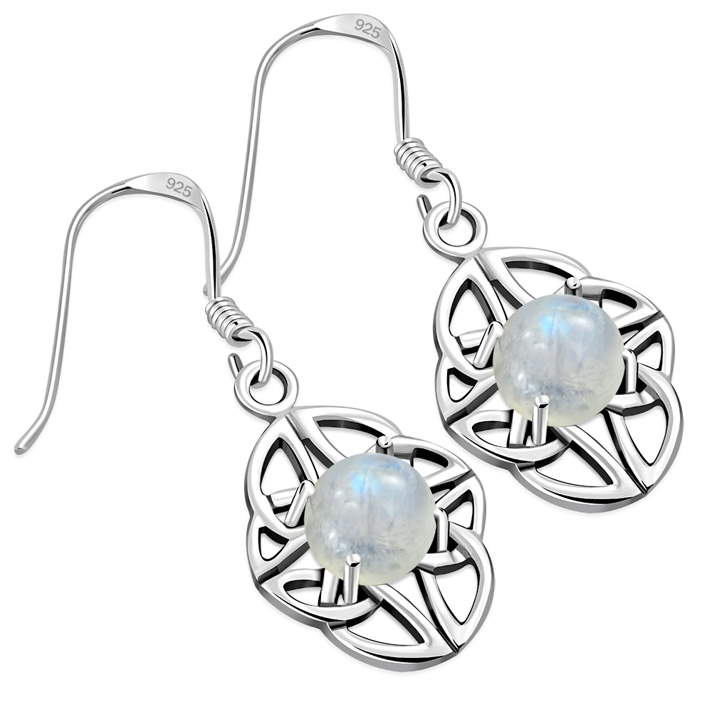 Rainbow Moonstone Celtic Knot Silver Earrings