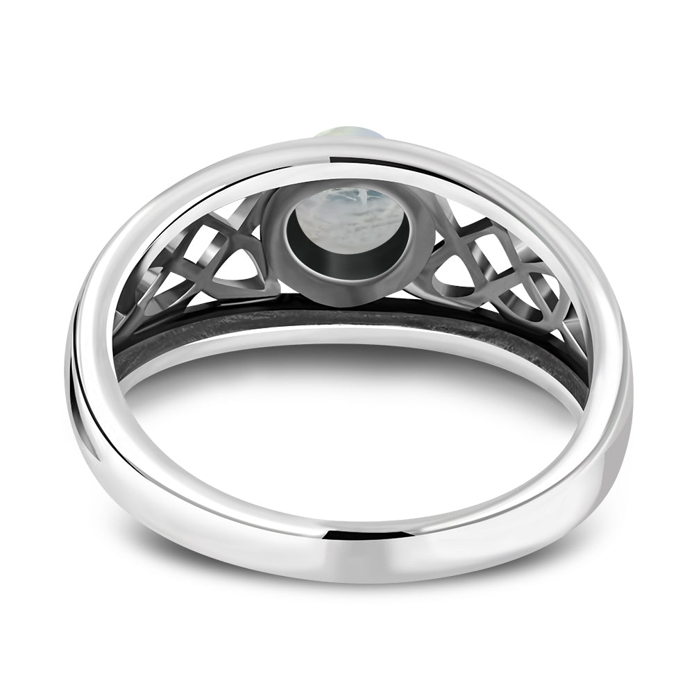 Rainbow Moonstone Celtic Silver Ring