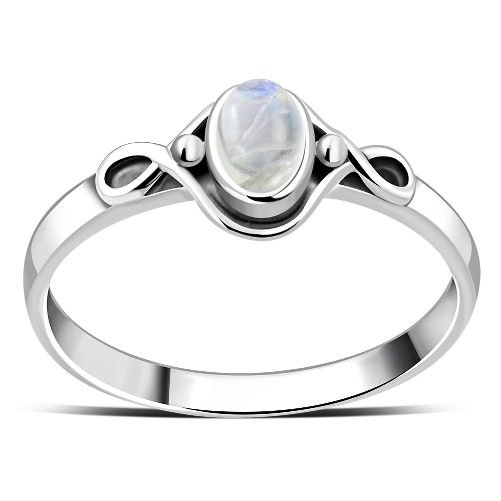 Rainbow Moonstone cab Celtic Silver Ring
