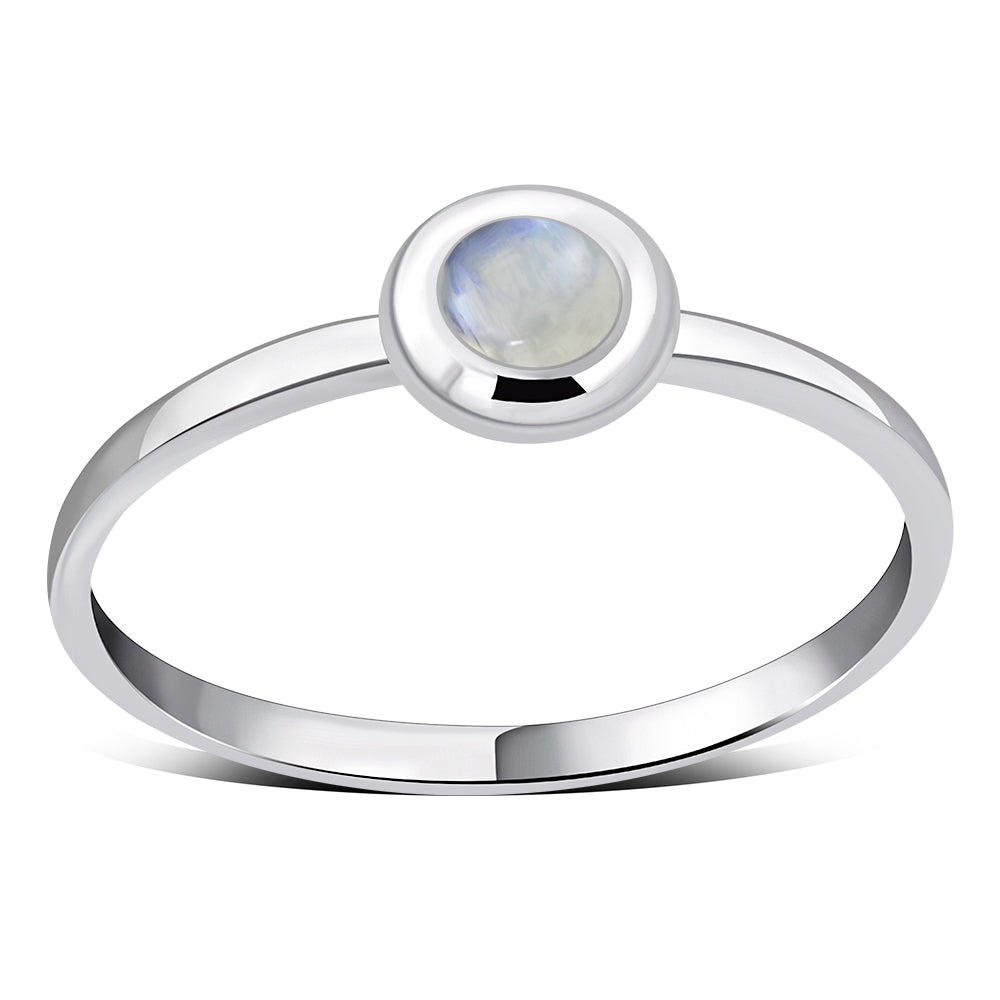 Simple Round Rainbow Moonstone Silver Ring
