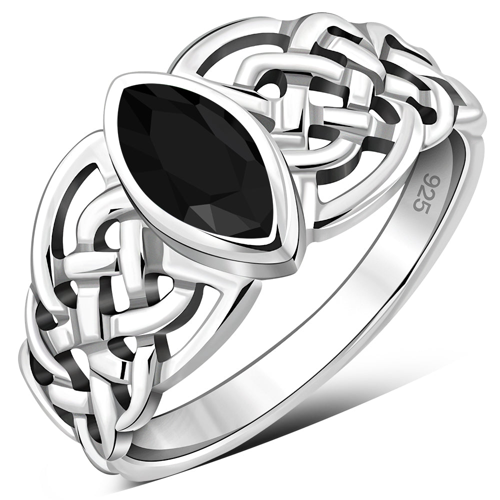 Marquise cut Black Onyx Celtic Silver Ring