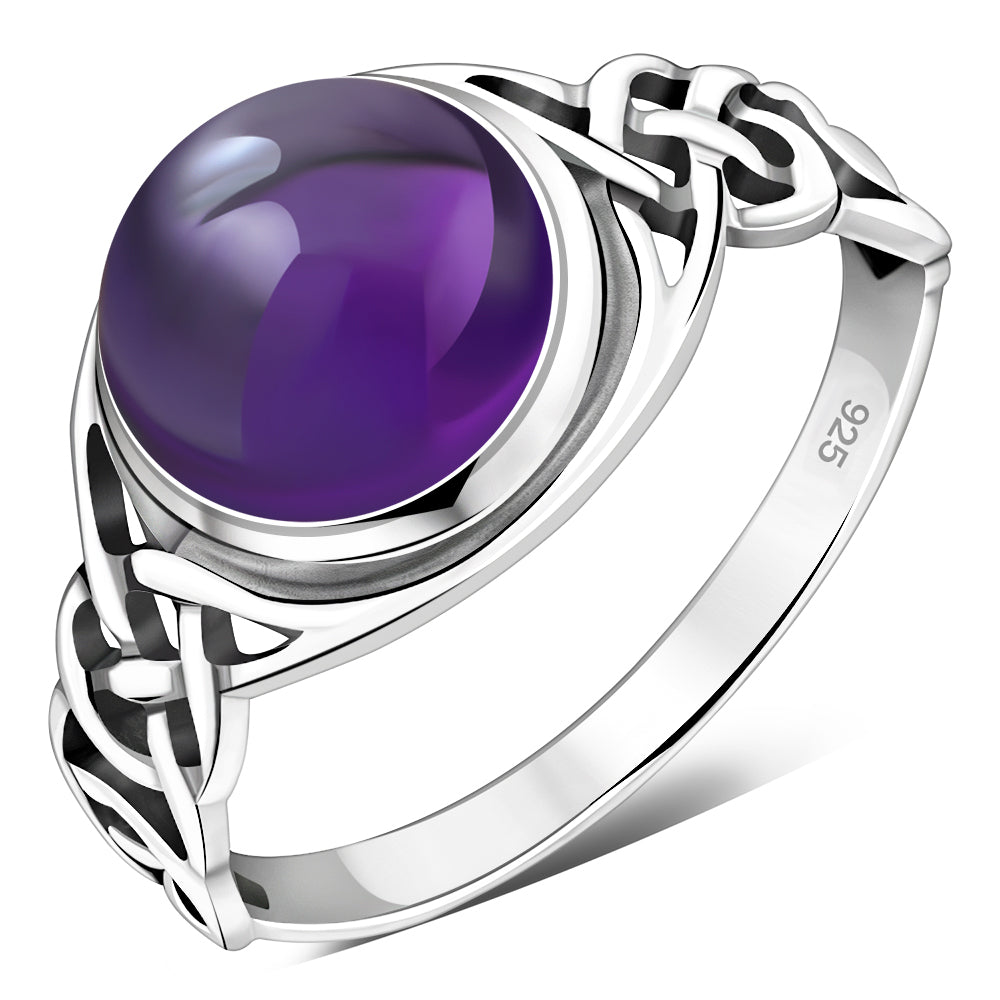 Amethyst Stone Celtic Sterling Silver Ring
