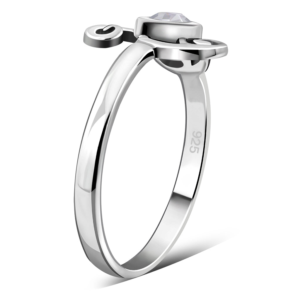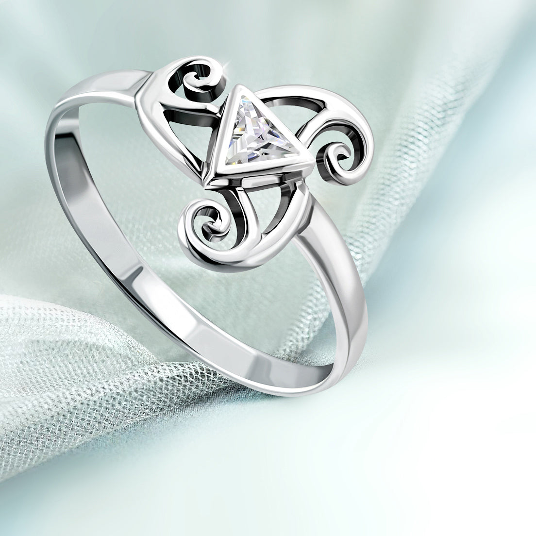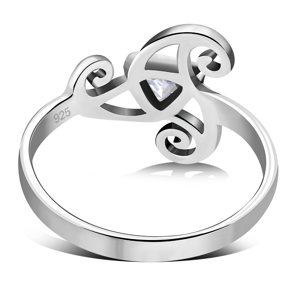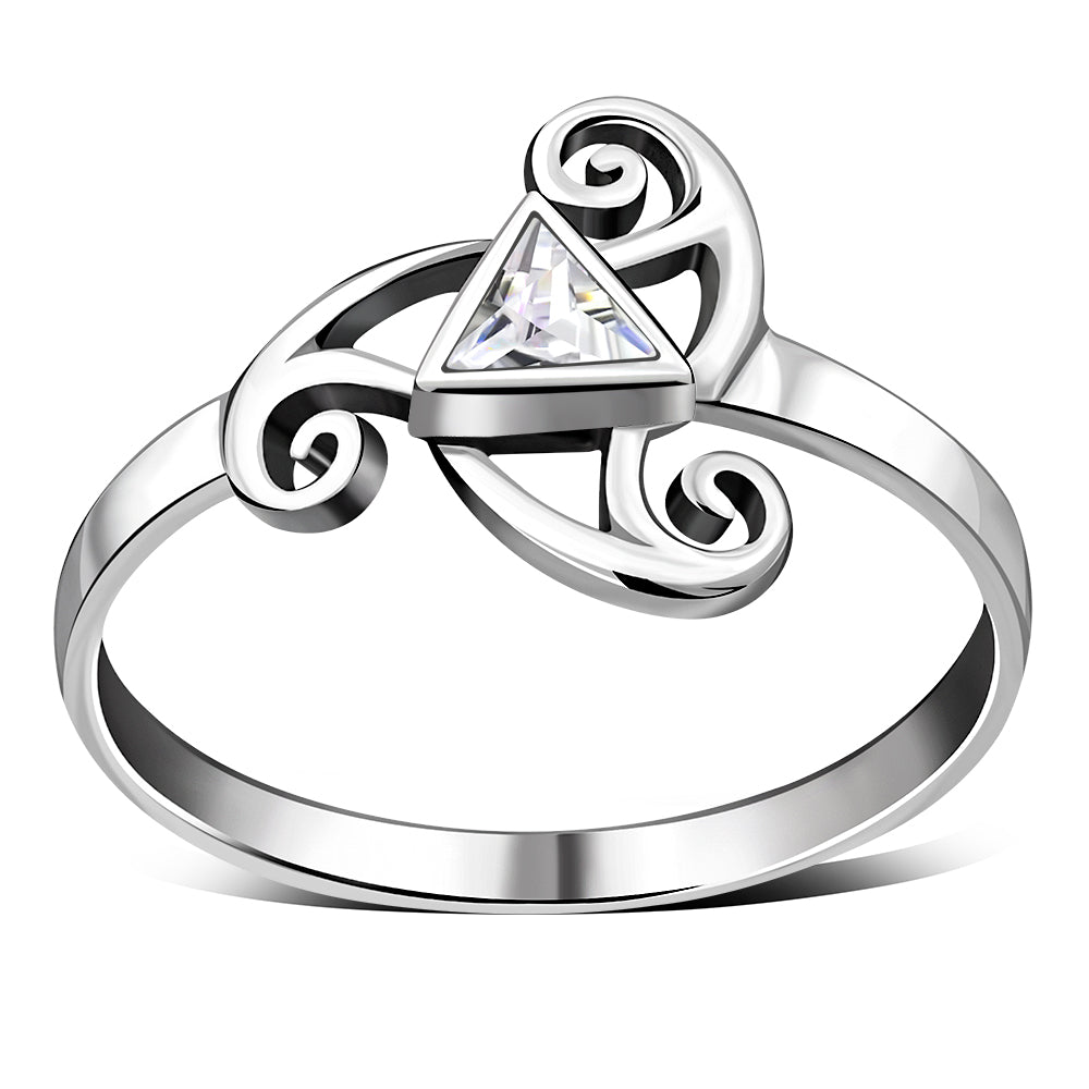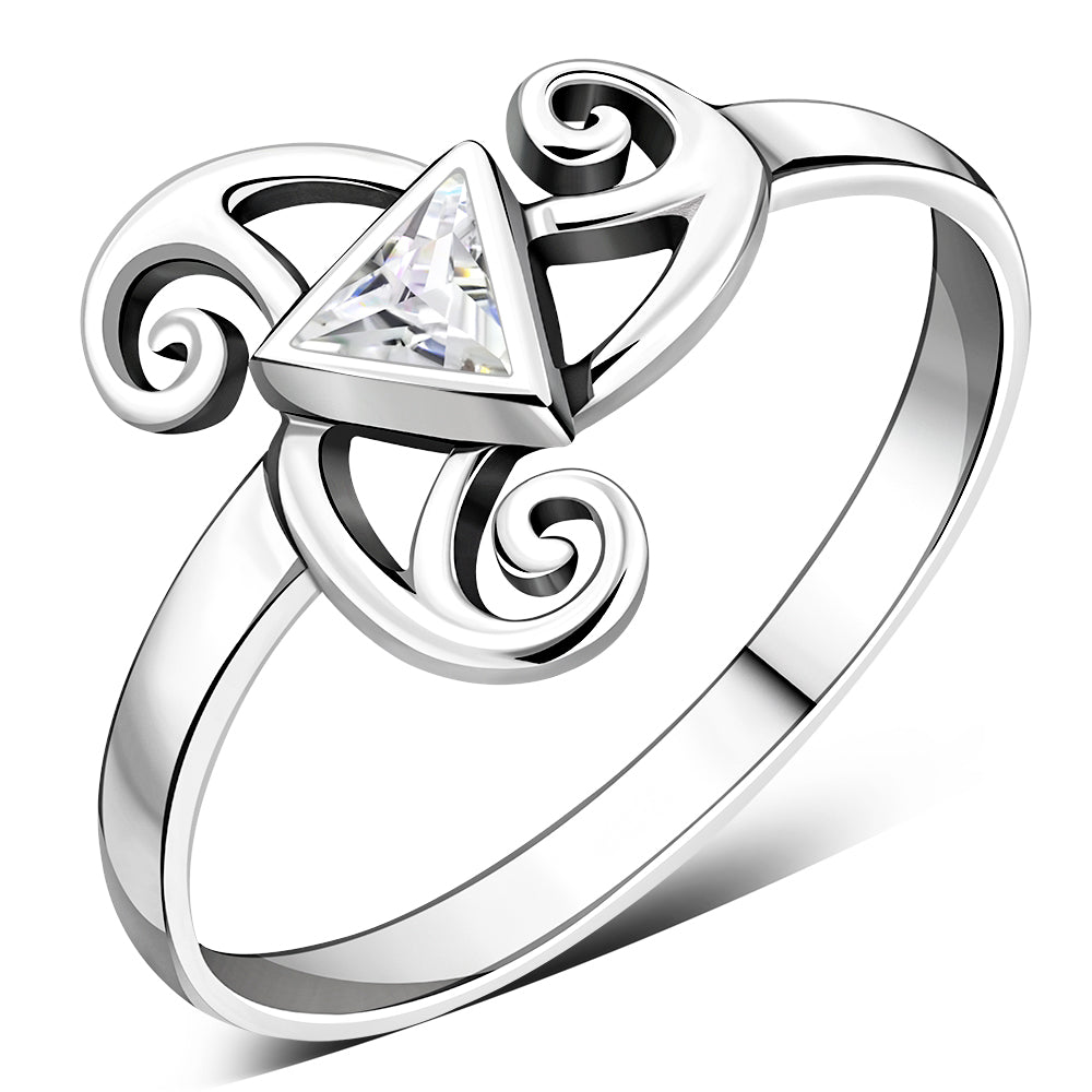 Clear CZ Triskele Triple Spiral Silver Ring