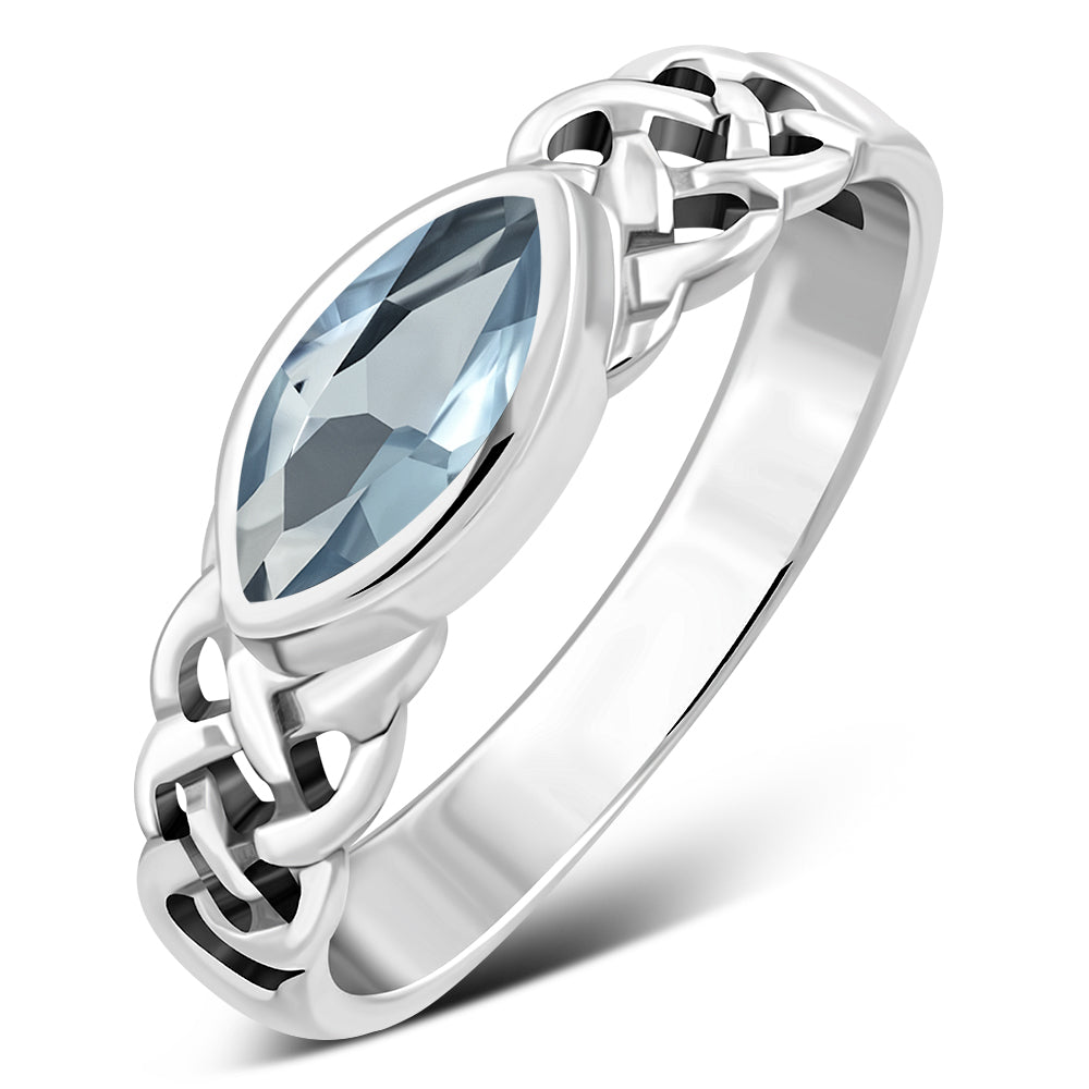 Marquise cut Blue Topaz CZ Celtic Silver Ring