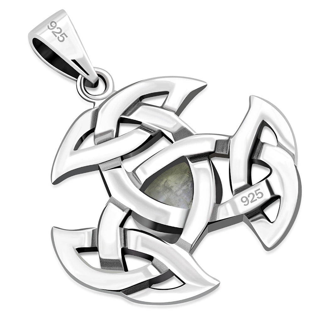 Silver Trinity Knot Pendant set w/ Rainbow Moonstone