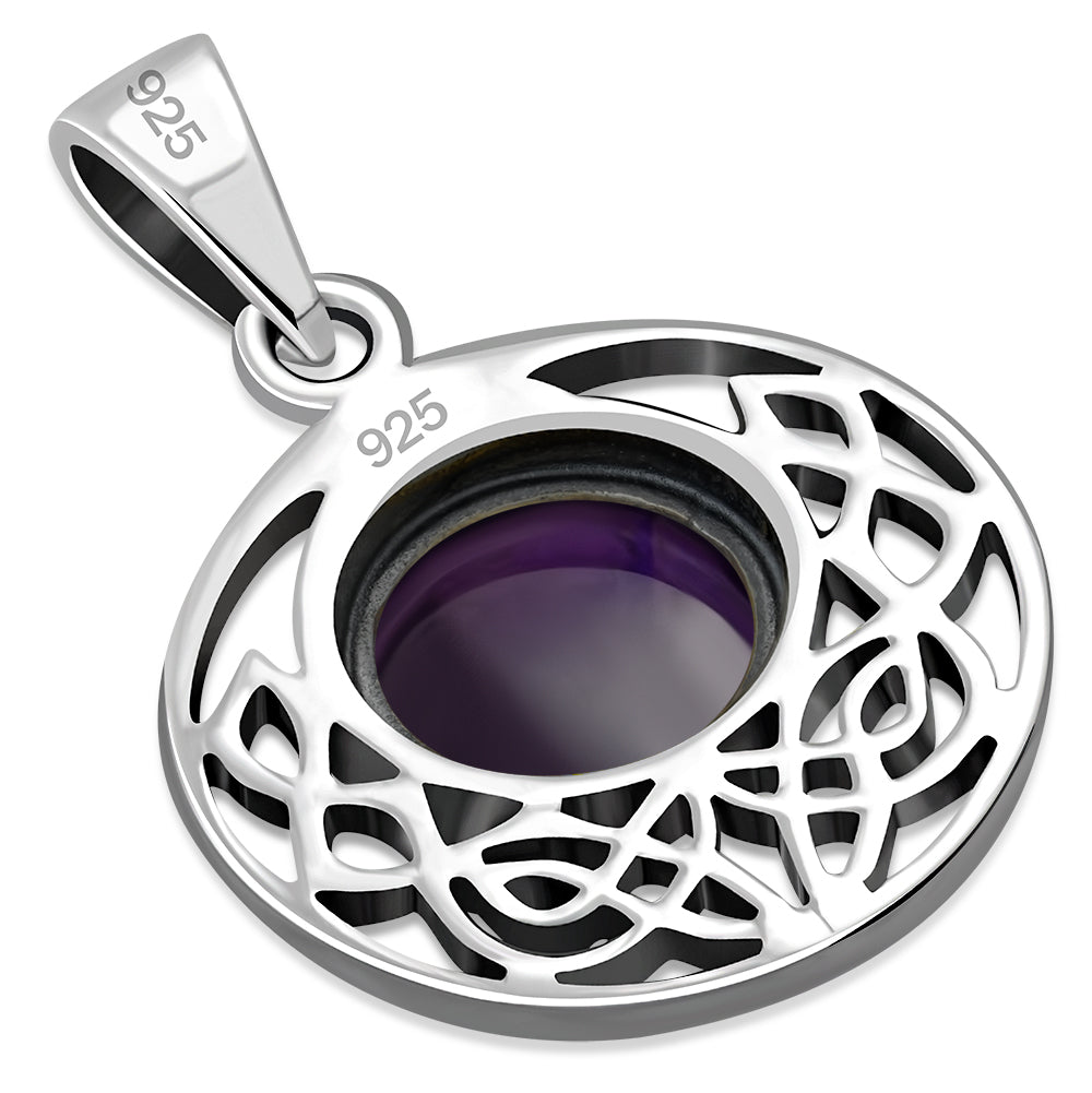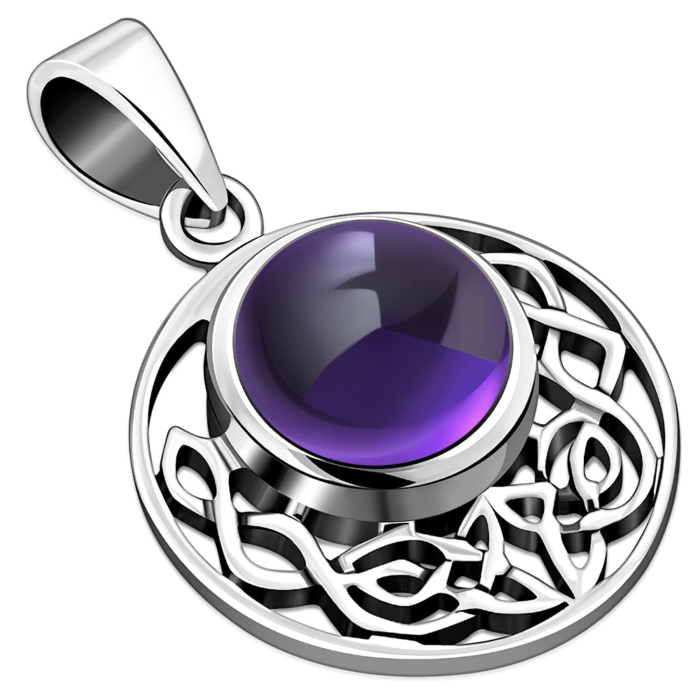 Amethyst Stone Round Celtic Knot Silver Pendant