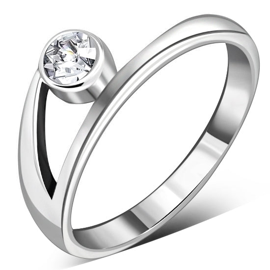 Clear CZ Sterling Silver Simple Silver Ring