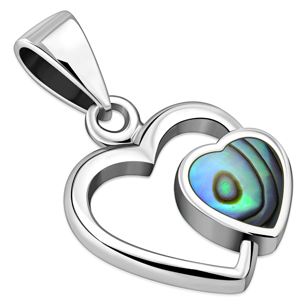 Abalone Shell Hearts Silver Pendant