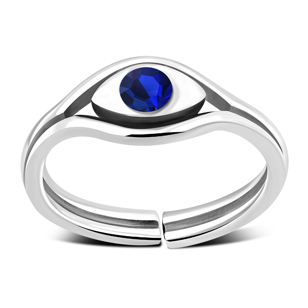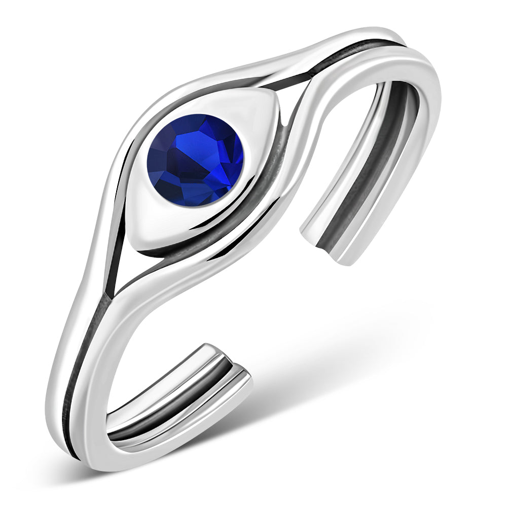 Blue Sapphire CZ Evil Eye Silver Toe Ring