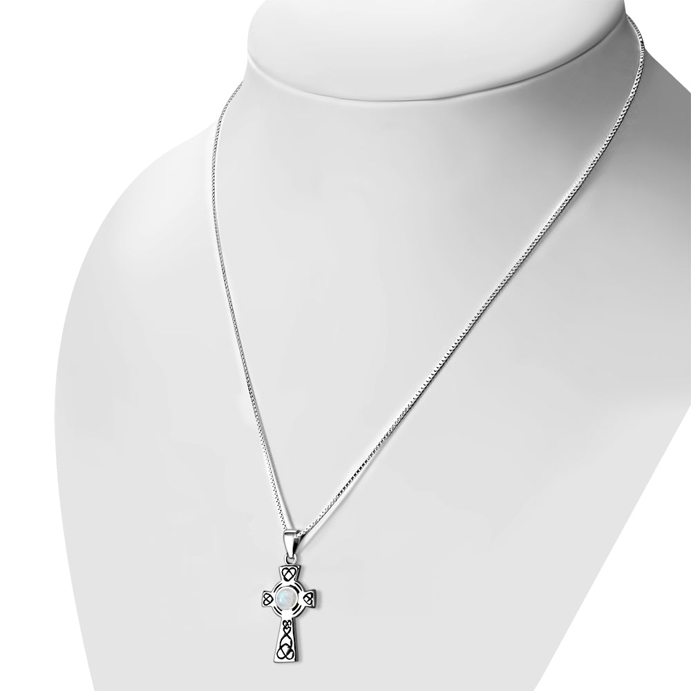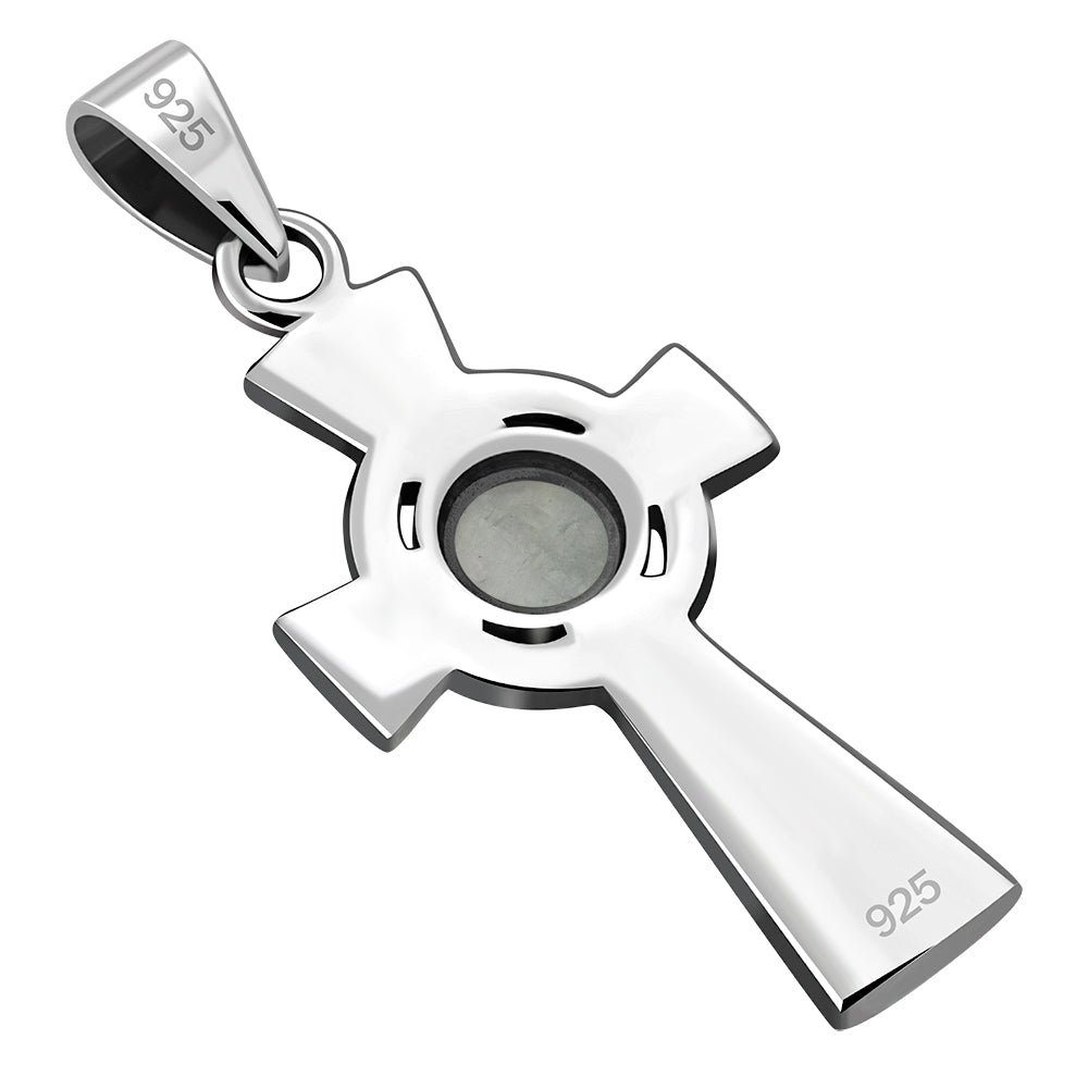 Rainbow Moonstone Celtic Cross Silver Pendant