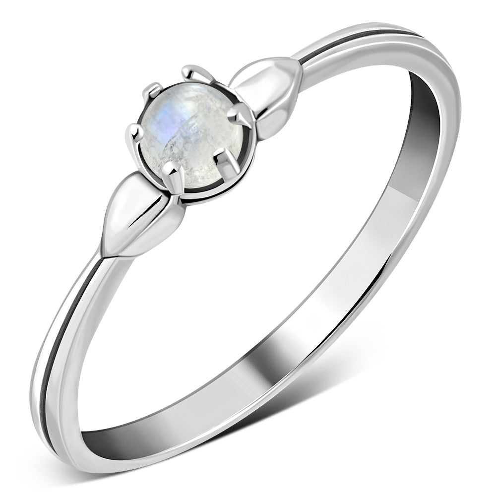 Six Prong Solitaire Rainbow Moonstone Sterling Silver Ring